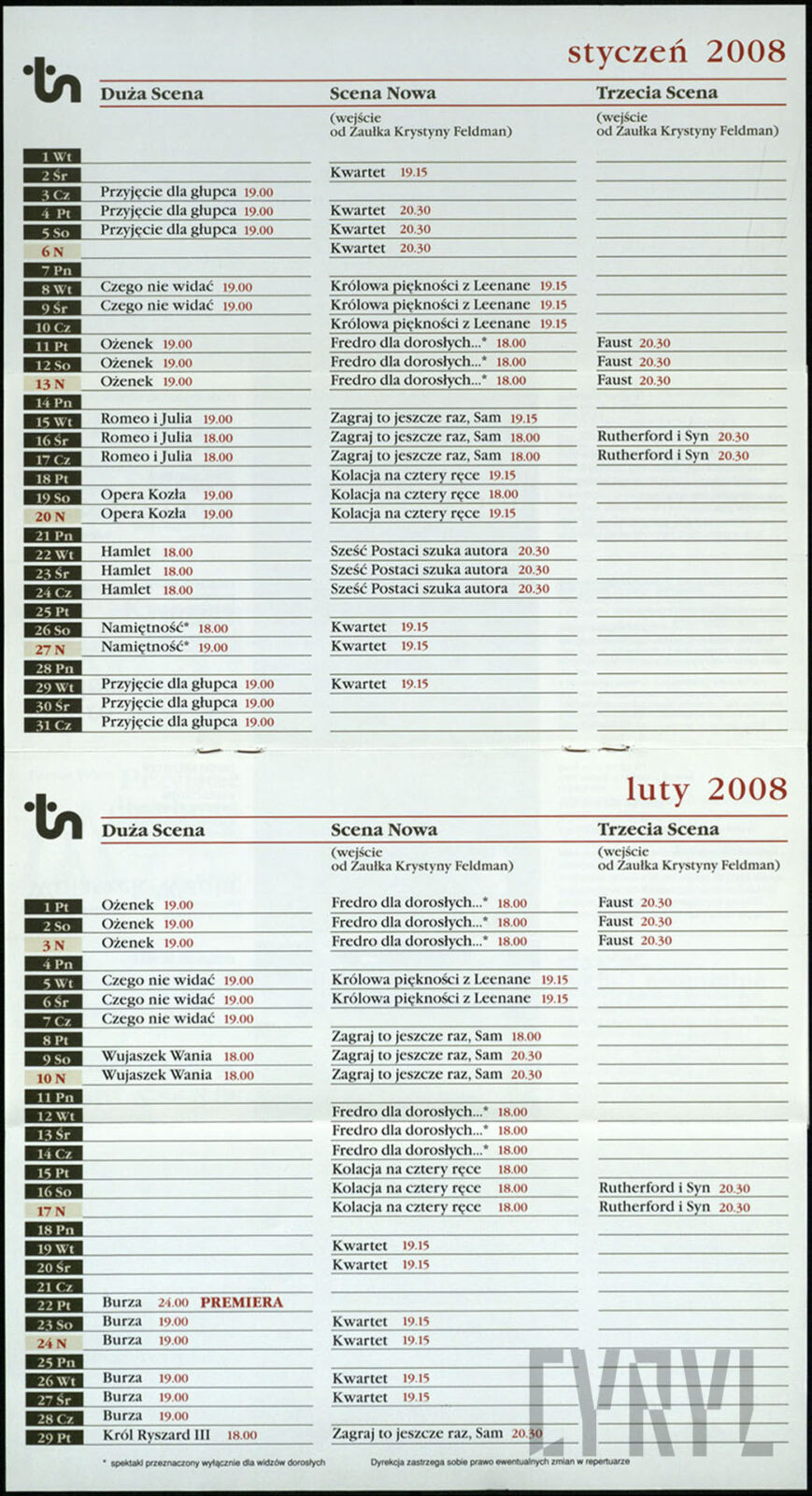 Repertuar Teatru Nowego w styczniu i lutym 2008 roku