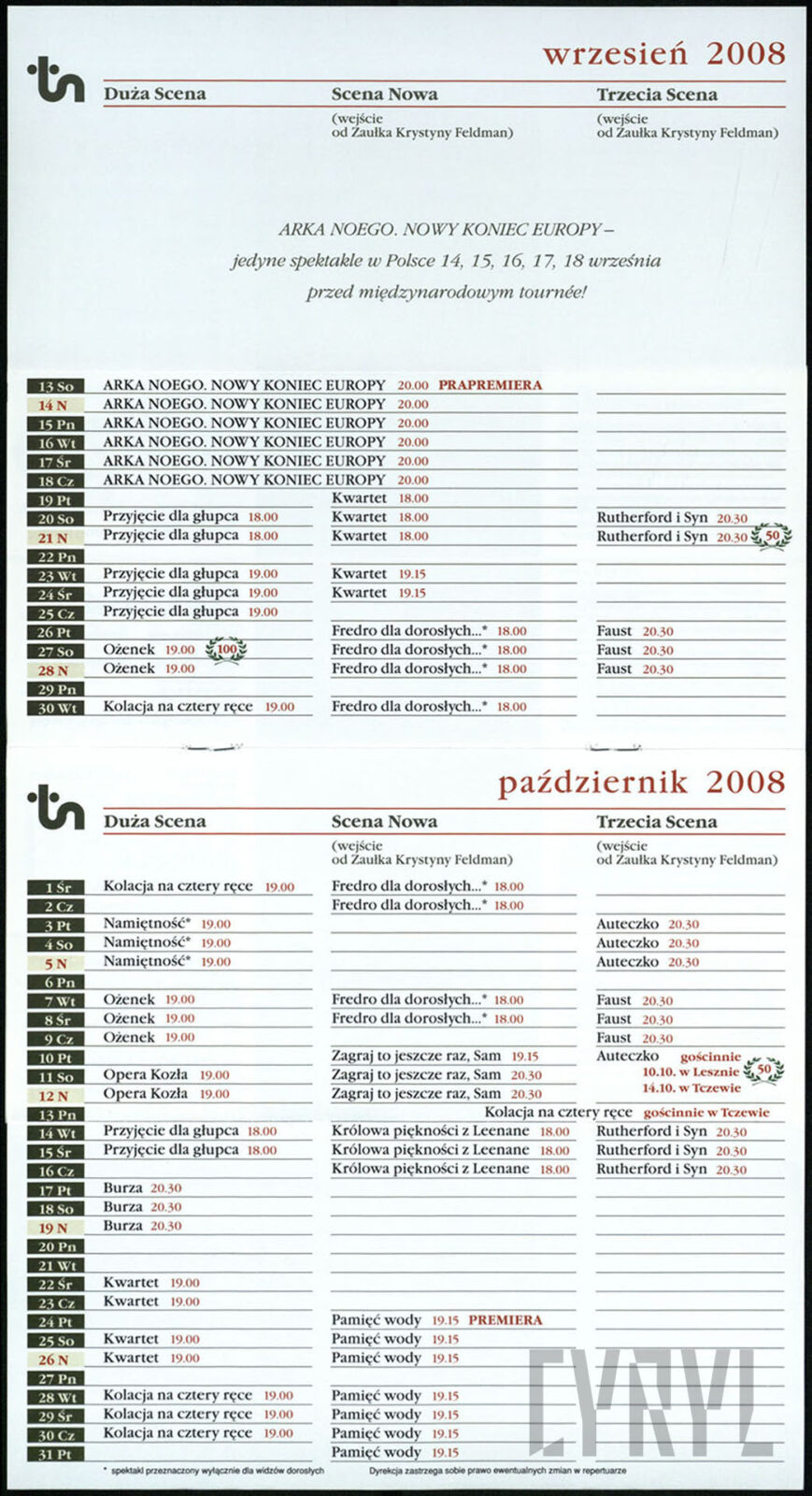 Repertuar Teatru Nowego we wrześniu i październiku 2008 roku