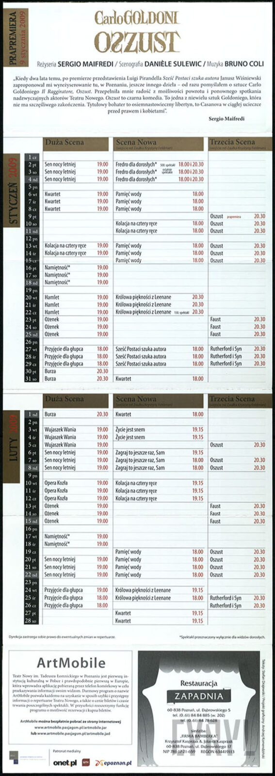 Repertuar Teatru Nowego w styczniu i lutym 2009 roku