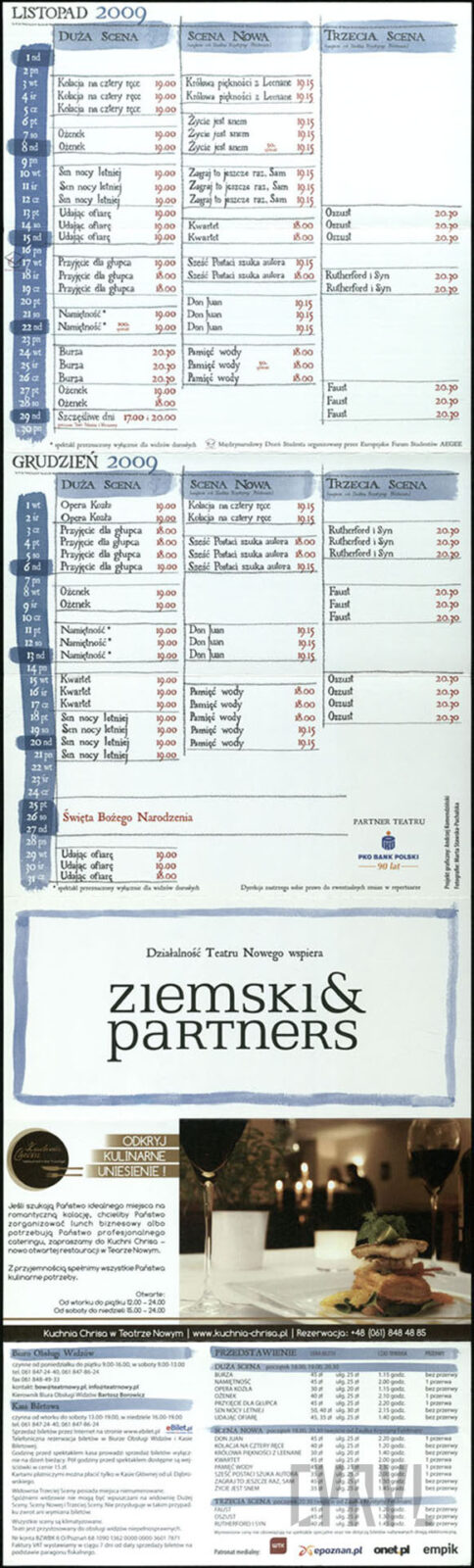 Repertuar Teatru Nowego w listopadzie i grudniu 2009 roku