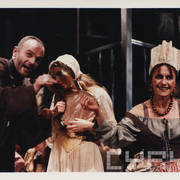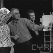 Paweł Binkowski, Małgorzata Mielcarek oraz Daniela Popławska w spektaklu "Kuglarze i wisielcy"