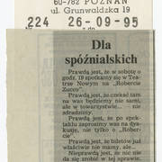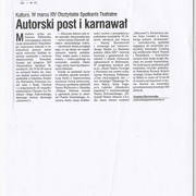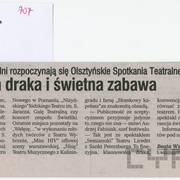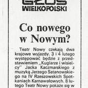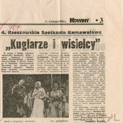 Notatka informująca o wystawieniu spektaklu "Kuglarze i wisielcy" w ramach 4 Rzeszowskich Spotkań Karnawałowych
