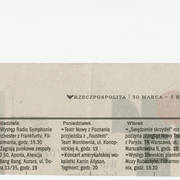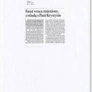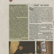 Fragment kroniki wydarzeń kulturalnych z informacją o przyznaniu nagrody Herald Angel Award spektaklowi "Faust"