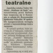 Artykuł zawierający m.in. recenzję spektaklu "Roberto Zucco"