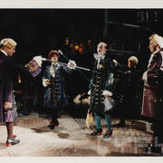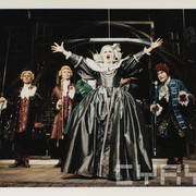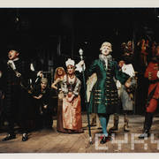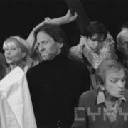 Janusz Andrzejewski, Zbigniew Grochal, Mirosław Kropielnicki, Paweł Hadyński oraz Andrzej Lajborek w spektaklu "Kuglarze i wisielcy"