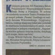 Zapowiedź XII Ogólnopolskiego Festiwalu Sztuk Przyjemnych i Nieprzyjemnych, podczas którego wystawiono spektakl "Faust"