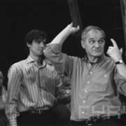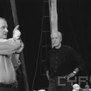 Wiesław Cichy oraz Mariusz Sabiniewicz w spektaklu "Kuglarze i wisielcy"