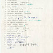 Notatka zawierająca wykaz rekwizytów do spektaklu "Kuglarze i wisielcy"
