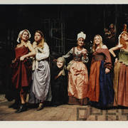 Grażyna Korin, Katarzyna Bujakiewicz, Ewa Szumska, Daniela Popławska oraz Katarzyna Kulik w spektaklu "Kuglarze i wisielcy"