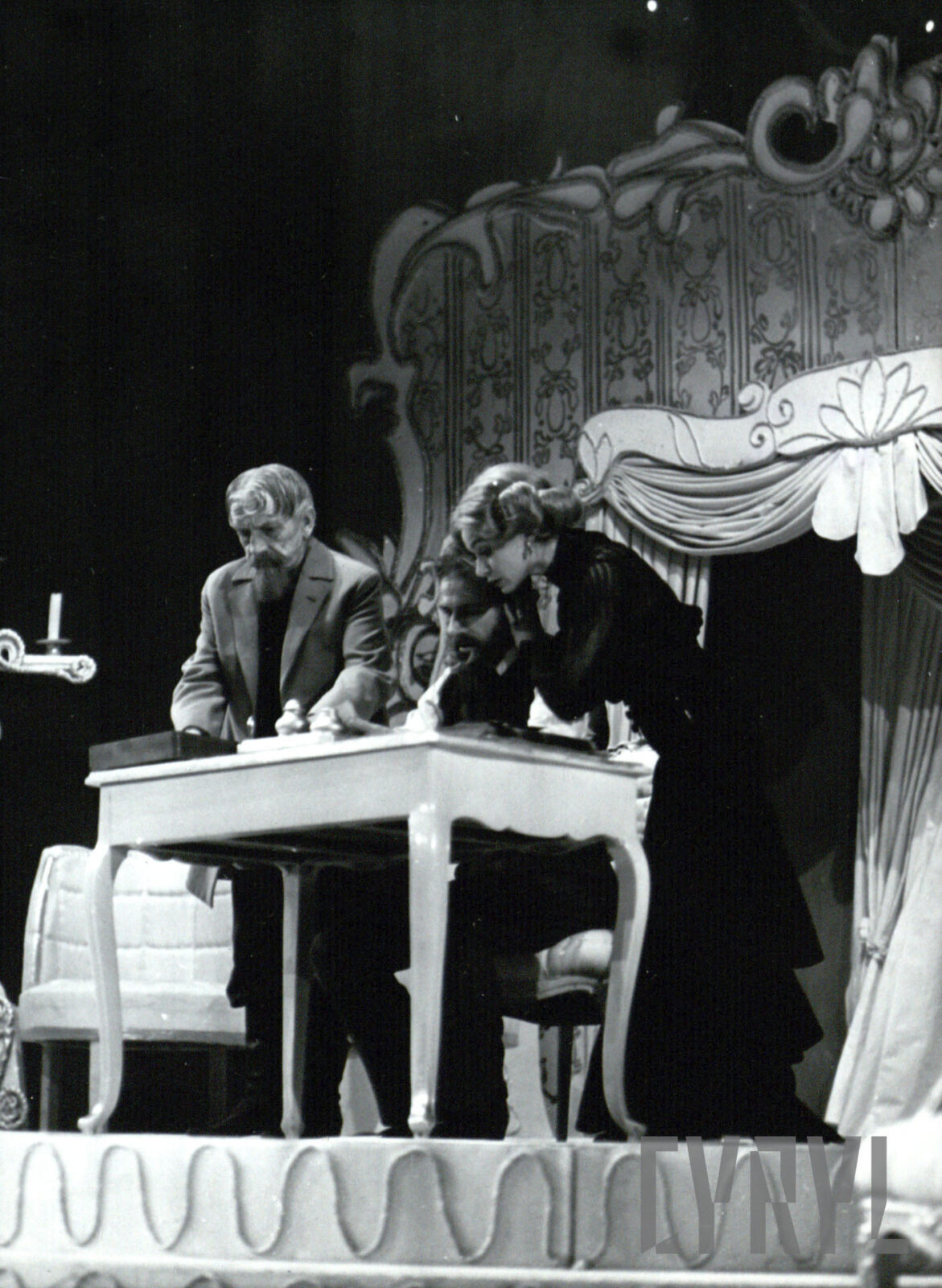 Janusz Łagodziński, Mieczysław Ostroróg i Janina Jankowska w spektaklu "Wariat i zakonnica" Stanisława Ignacego Witkiewicza w Teatrze Polskim w Poznaniu
