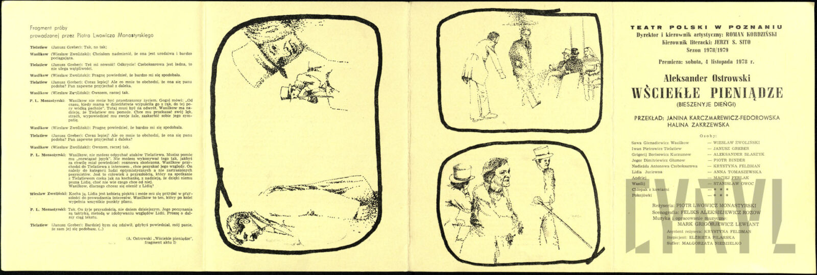 Program spektaklu "Wściekłe pieniądze" Aleksandra Ostrowskiego w Teatrze Polskim w Poznaniu