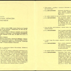 Program spektaklu "Wariat i zakonnica" Stanisława Ignacego Witkiewicza w Teatrze Polskim w Poznaniu