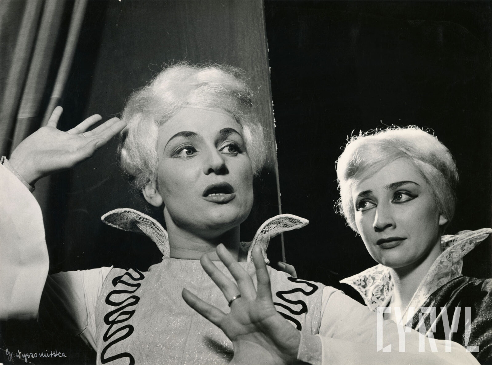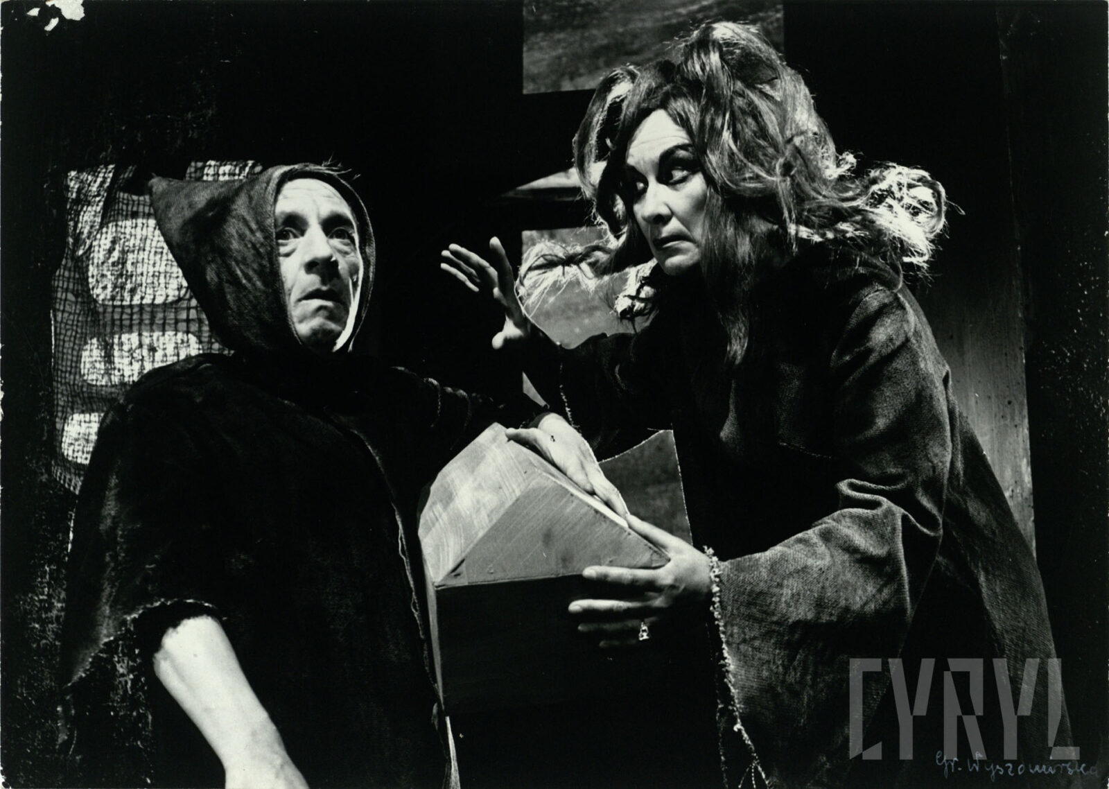 09.04.1960Anna Gołębiowska (La Tyzbe, aktorka) i Aleksandra Koncewicz (Katarina Bragadini, żona Angelo Malipiery) w spektaklu Angelo, tyran Padwy Wiktora Hugo wystawionym na deskach Teatru Nowego w Poznaniu