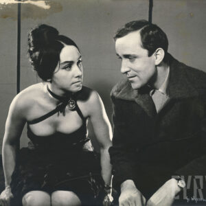 02.10.1964Irena Maślińska (Elżbieta de Groulingen) i Leonard Pietraszak (Cudzoziemiec) w spektaklu Dziecinni kochankowie Fernanda Crommelynck’a wystawionym na deskach Teatru Nowego w Poznaniu