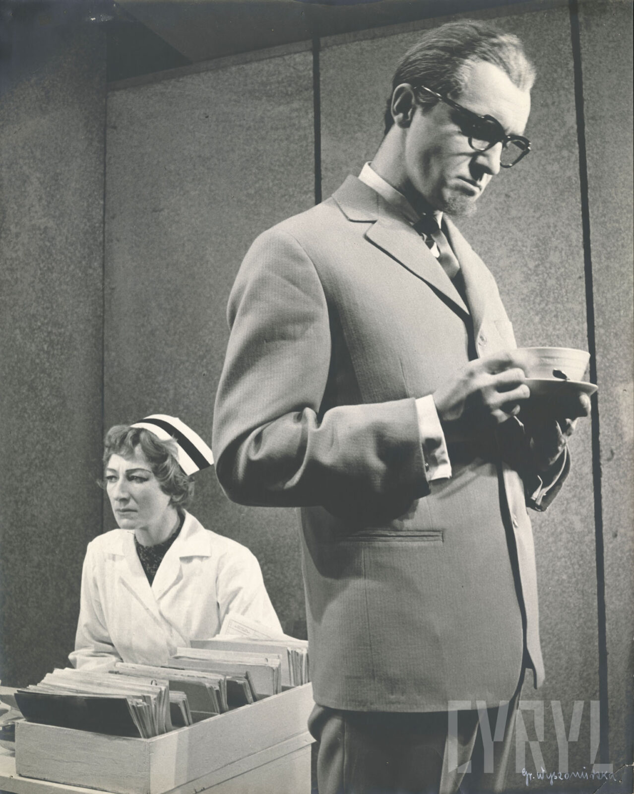 26.05.1963Henryk Machalica (Jan Wilhelm Möbius) w spektaklu Fizycy Friedricha Dürrenmatta wystawionym na deskach Teatru Nowego w Poznaniu