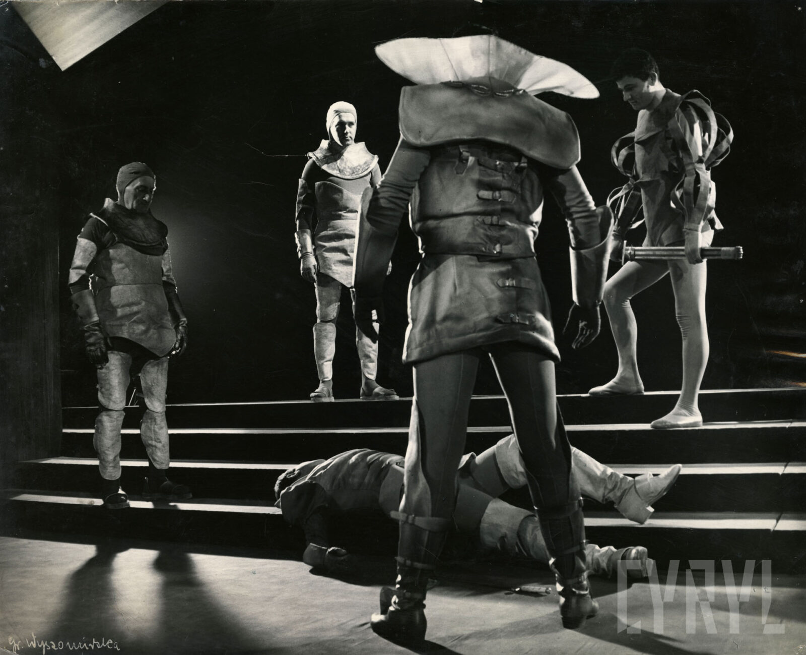 08.10.1966Scena zbiorowa w spektaklu W mrokach złotego pałacu, czyli Bazylissa Teofanu Tadeusza Micińskiego wystawionym na deskach Teatru Polskiego w Poznaniu