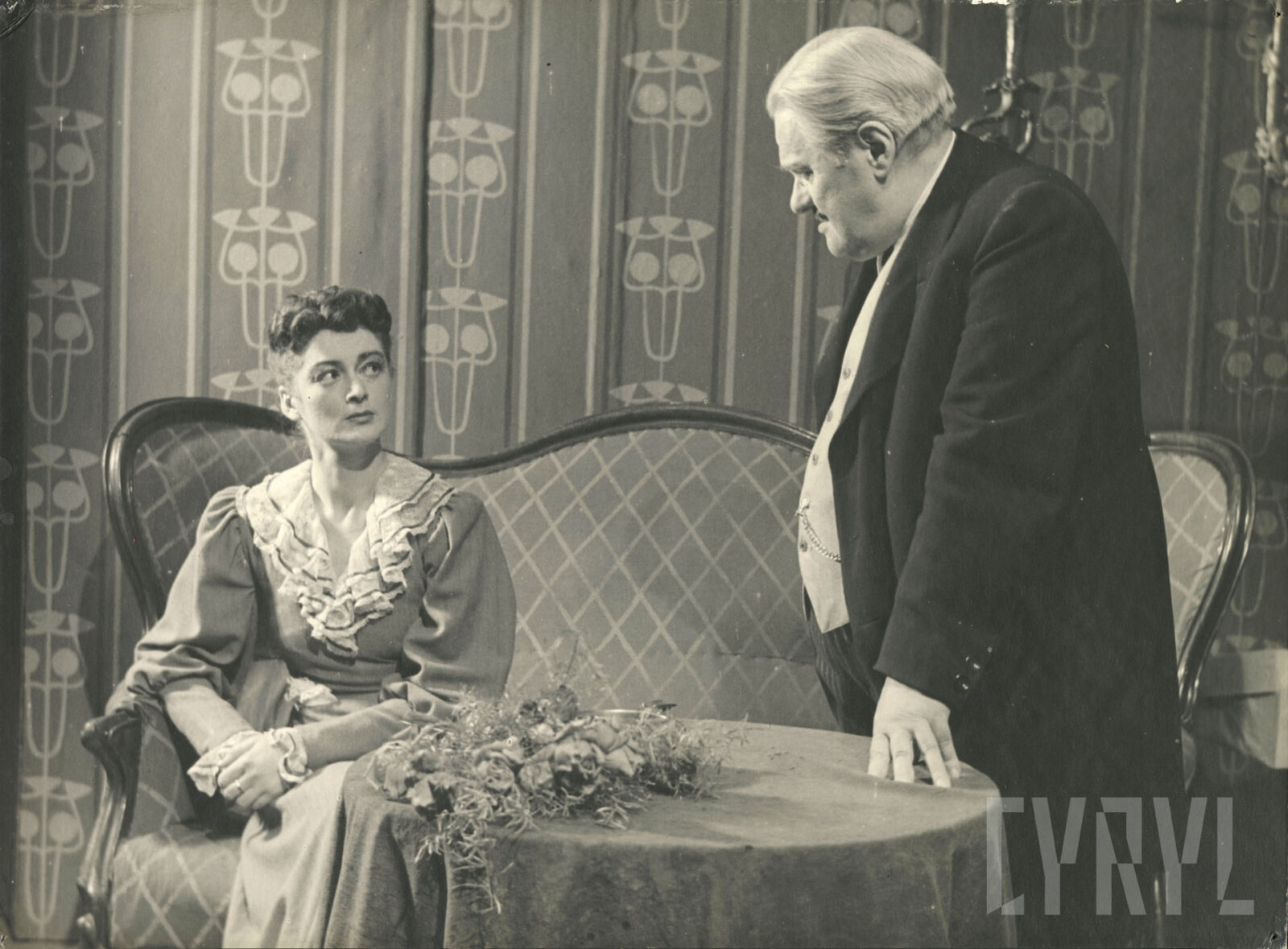 29.11.1952Władysław Stoma (Jaskrowicz) i Julia Kossowska (Wanda Ogrodzka) w spektaklu Grzech Stefana Żeromskiego wystawionym na deskach Teatru Polskiego w Poznaniu