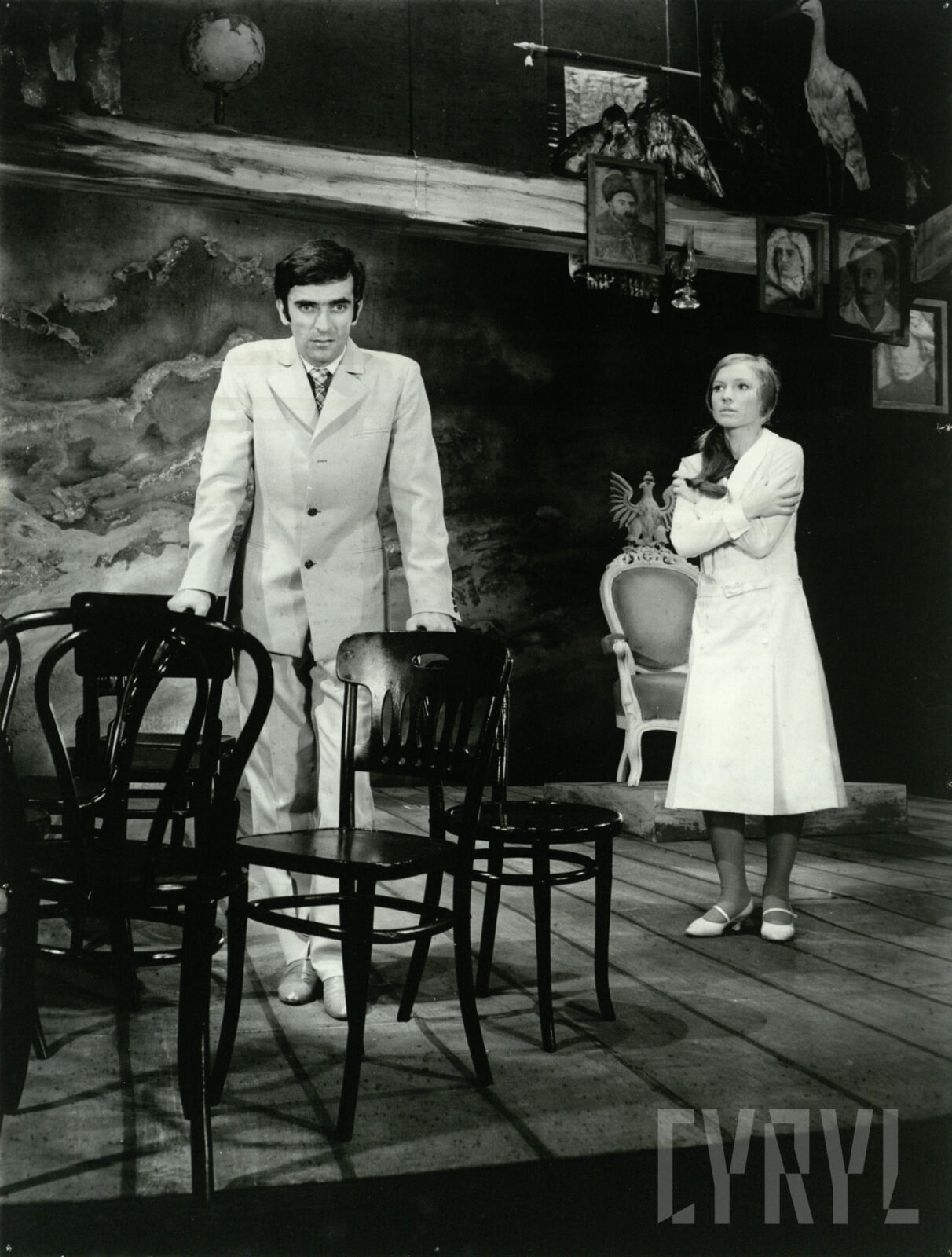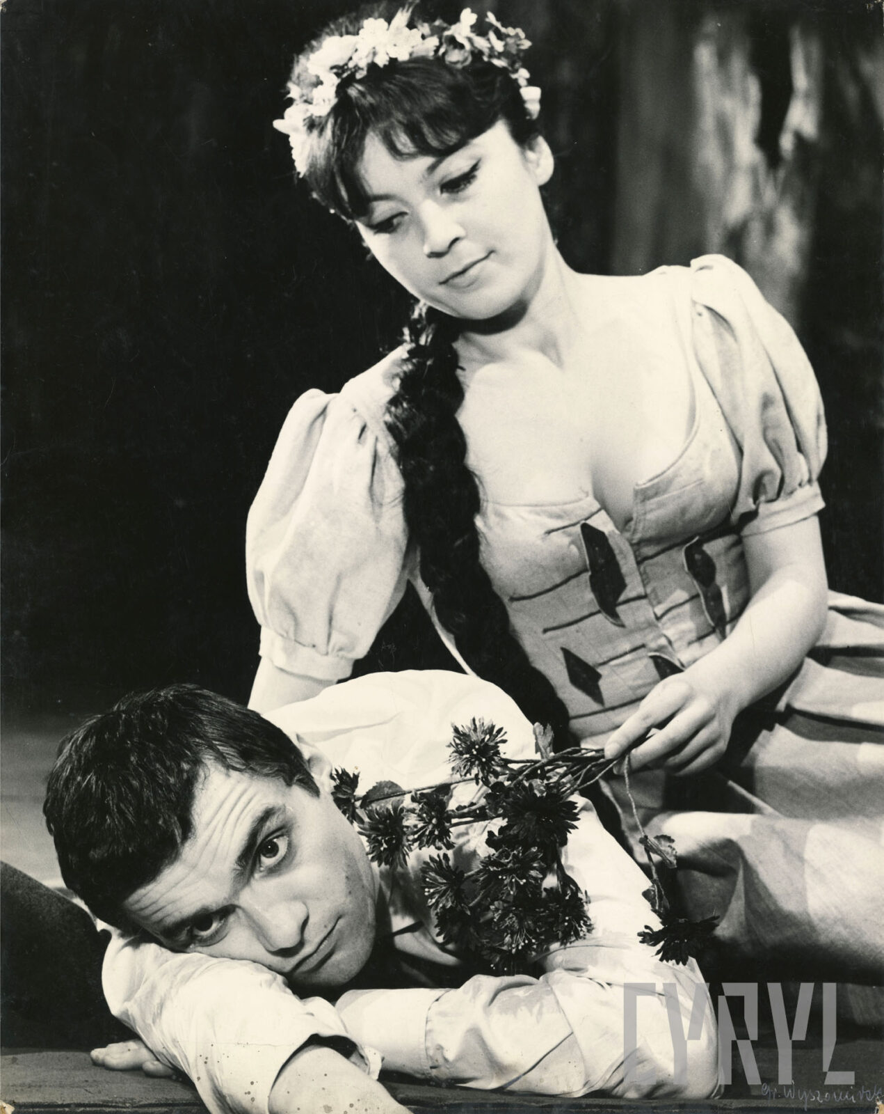 04.03.1965Zdzisław Wardejn (Szczęsny, syn hetmana) i Hanna Wróblówna (Maryna, dziewczyna wiejska) w spektaklu Horsztyński Juliusza Słowackiego wystawionym na deskach Teatru Polskiego w Poznaniu