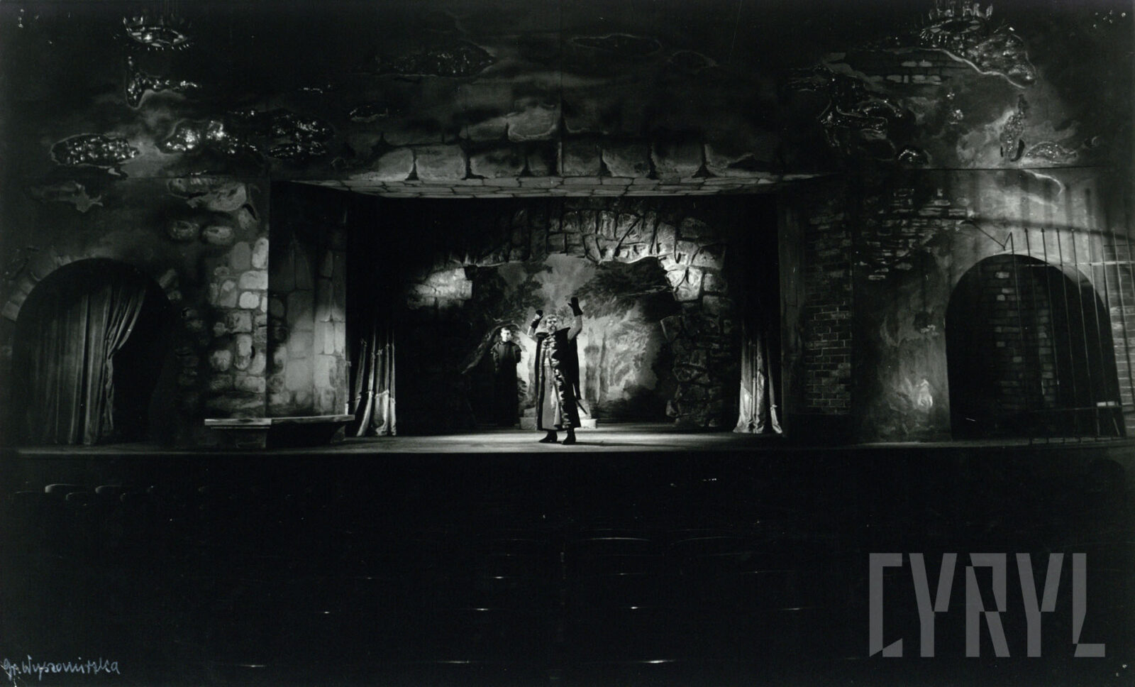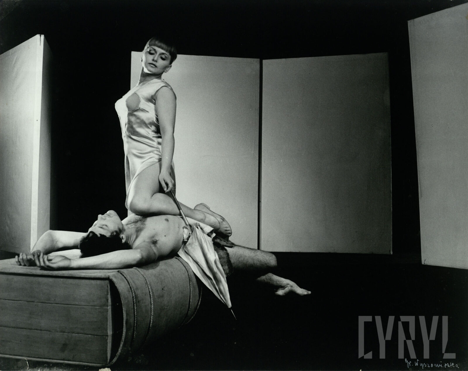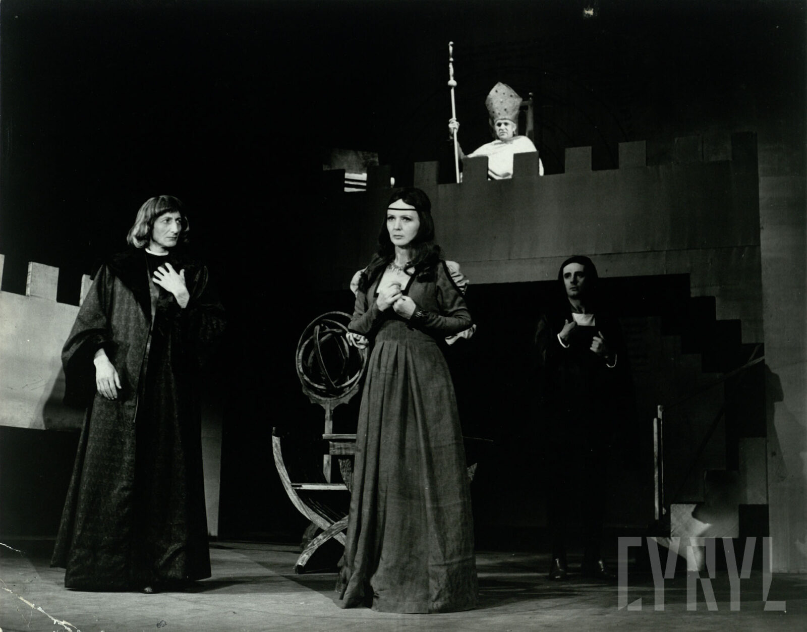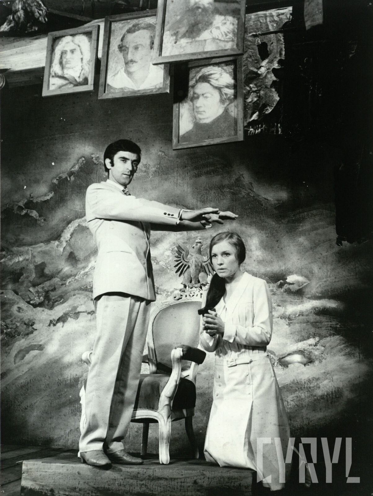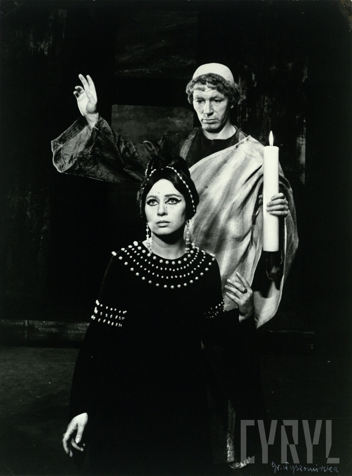 08.09.1967Danuta Balicka (Bazylissa Teofanu) i Rajmund Jakubowicz (Św. Atanazy) w spektaklu W mrokach złotego pałacu, czyli Bazylissa Teofanu Tadeusza Micińskiego wystawionym na deskach Teatru Polskiego w Poznaniu