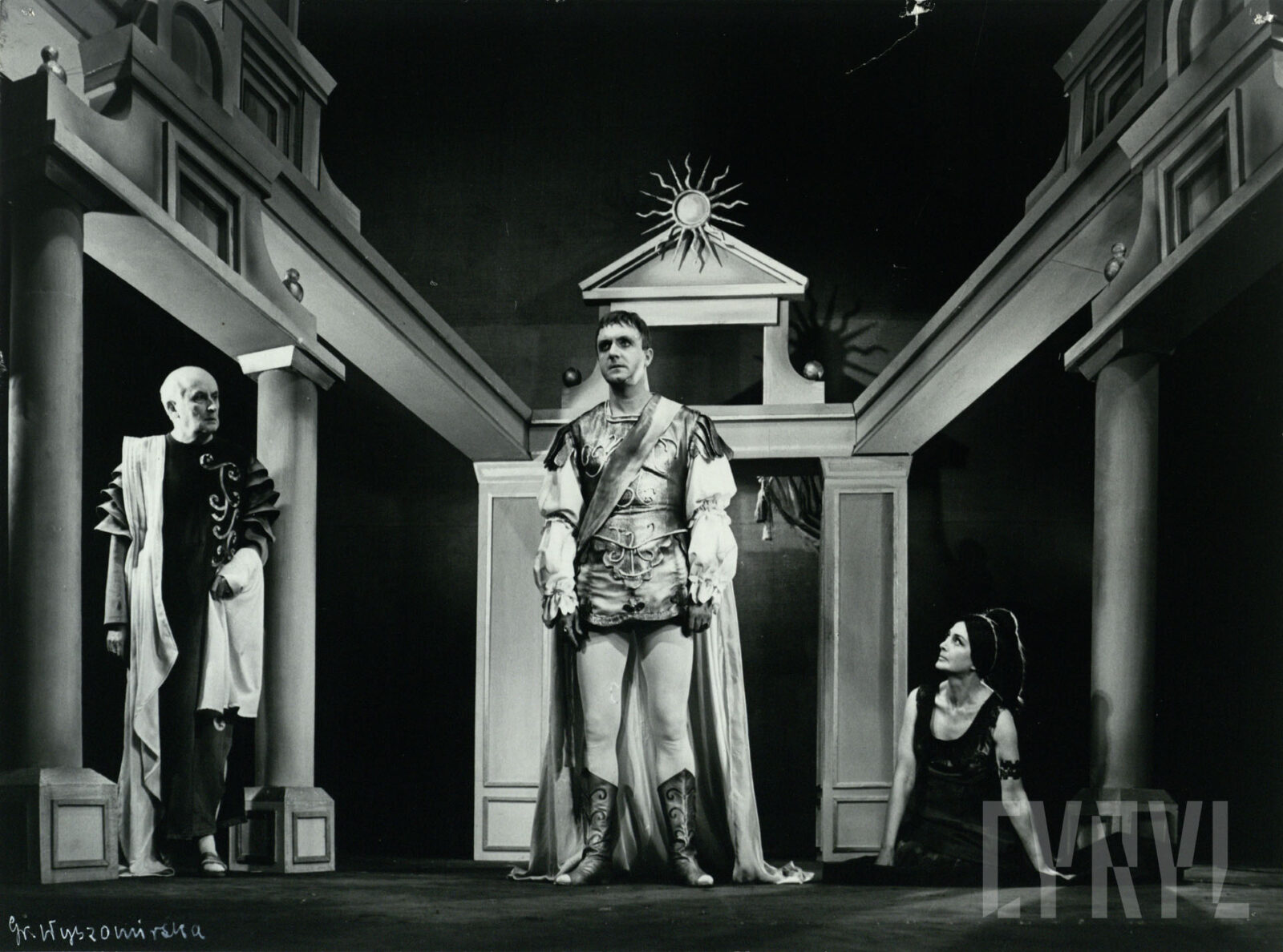 16.09.1967Stefan Drewicz, Henryk Machalica i Teresa Waśkowska w spektaklu Berenika Jean’a Racine’a wystawionym na deskach Teatru Nowego w Poznaniu