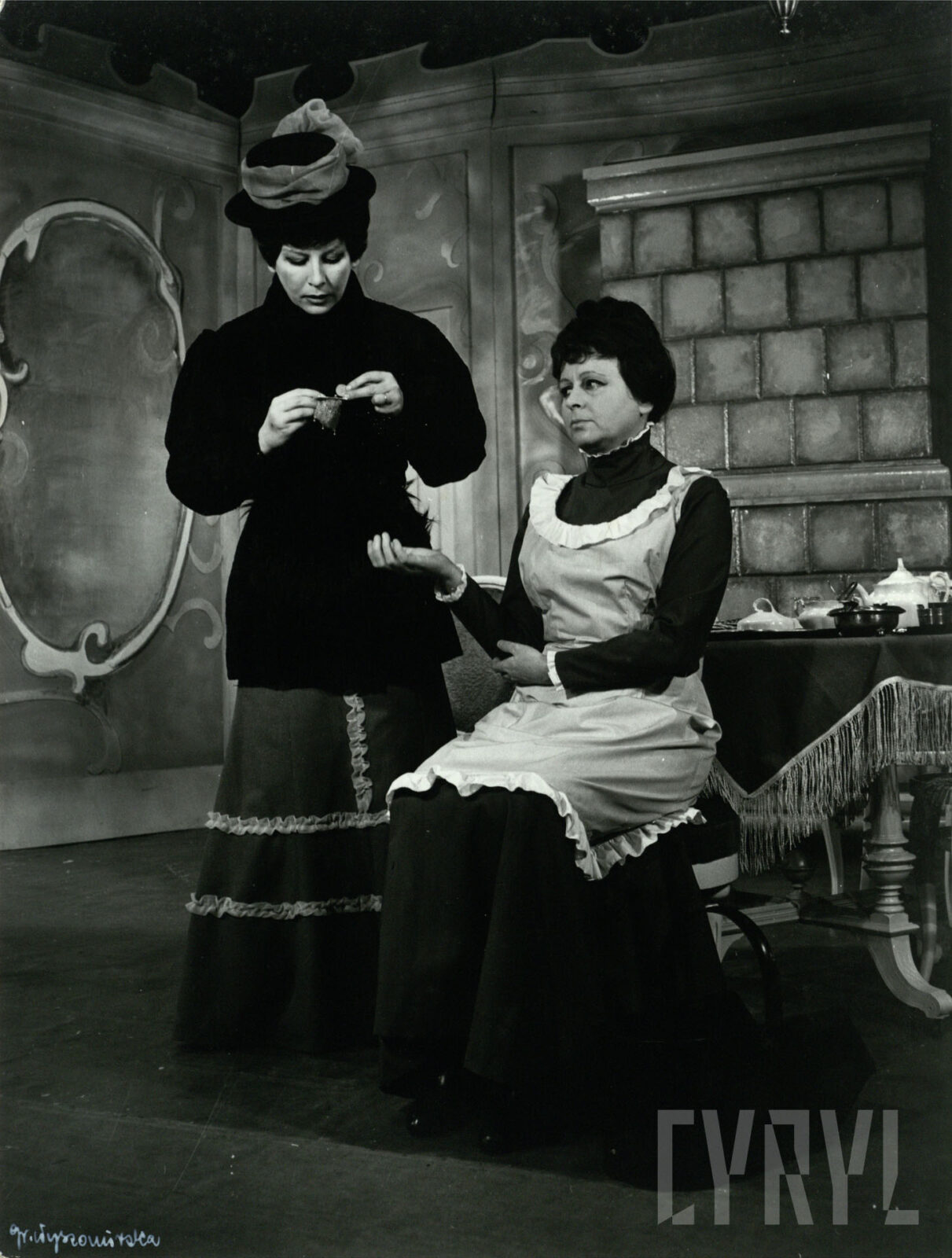 04.01.1969Sidonia Błasińska (Żona) i Janina Ratajska (Sługa) w spektaklu Ich czworo Gabrieli Zapolskiej na deskach Teatru Polskiego w Poznaniu