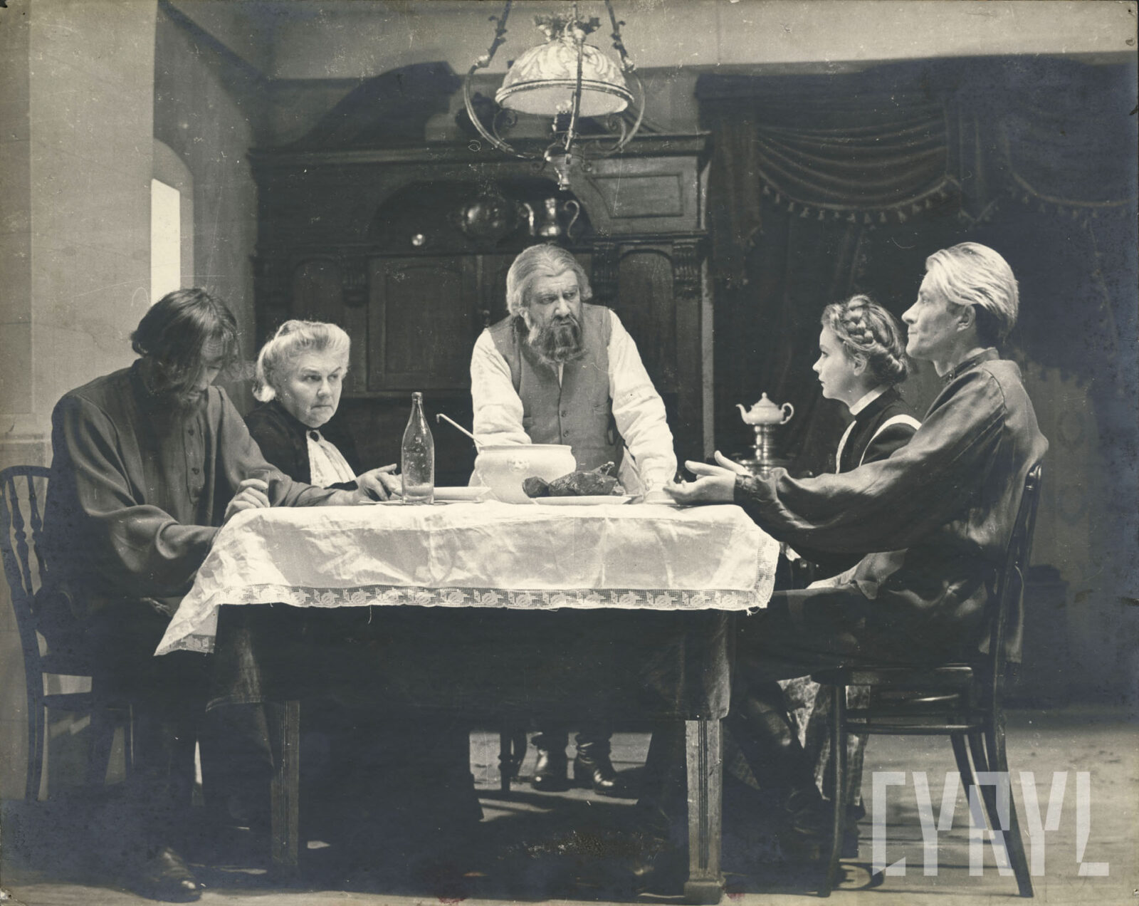 22.02.1952Scena zbiorowa spektaklu Mieszczanie Maksyma Gorkiego wystawionego na deskach Teatru Nowego w Poznaniu