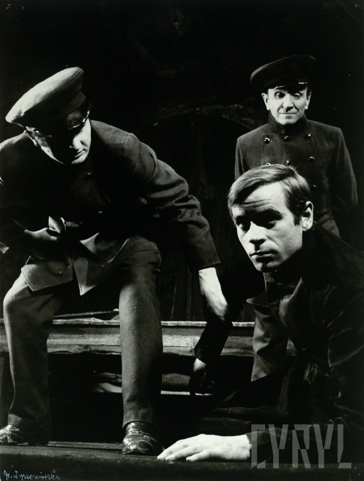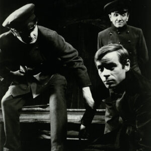 08.02.1969Janusz Greber (Proch), Kazimierz Borowiec (Raskolnikow) i Eugeniusz Kotarski (Zamiotow) w spektaklu Zbrodnia i kara Fiodora Dostojewskiego wystawionym na deskach Teatru Nowego w Poznaniu