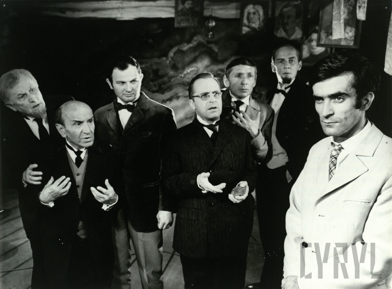 20.06.1968Scena zbiorowa w spektaklu Zbrodnia i kara Fiodora Dostojewskiego wystawionym na deskach Teatru Nowego w Poznaniu, na pierwszym planie Kazimierz Borowiec (Raskolnikow)