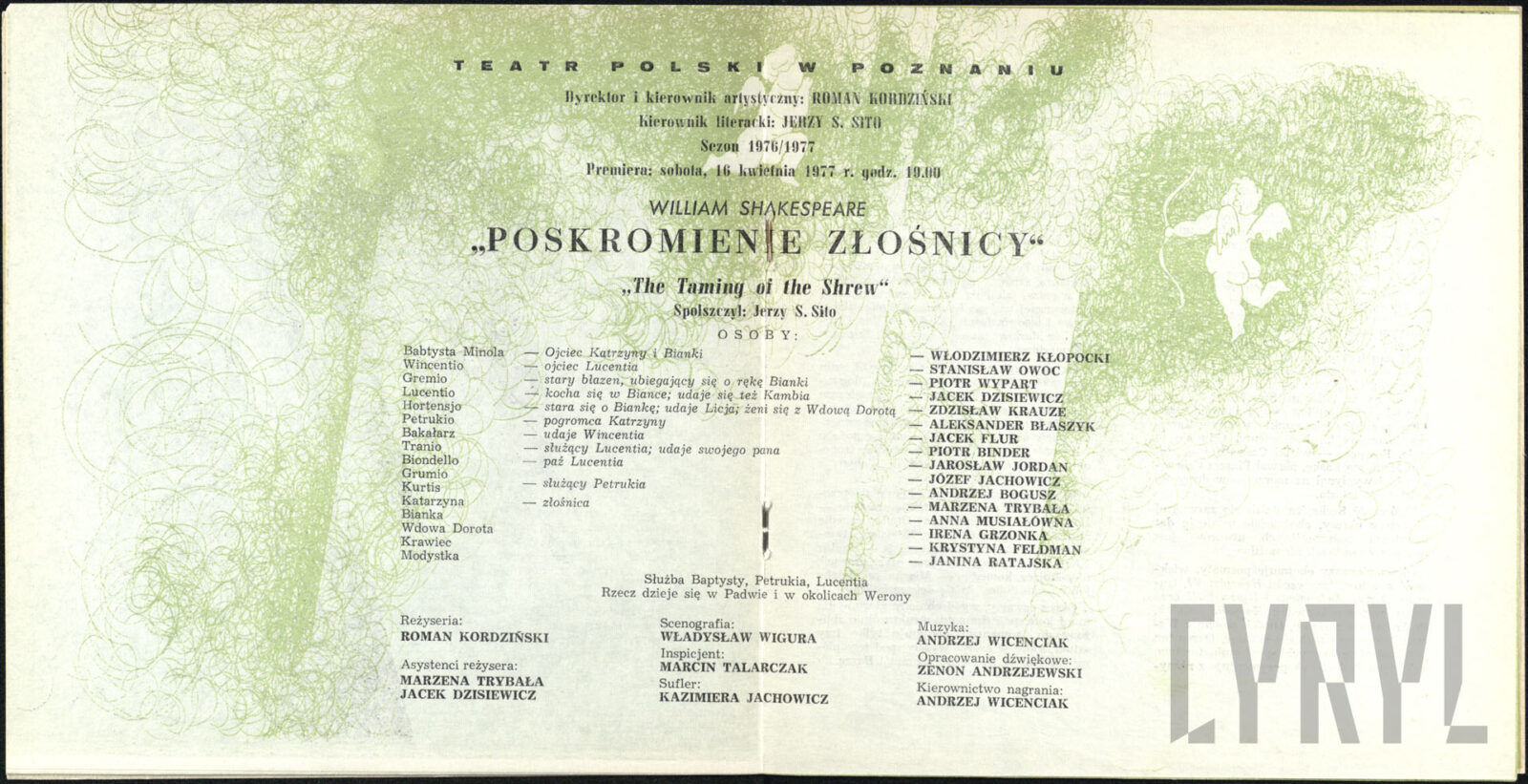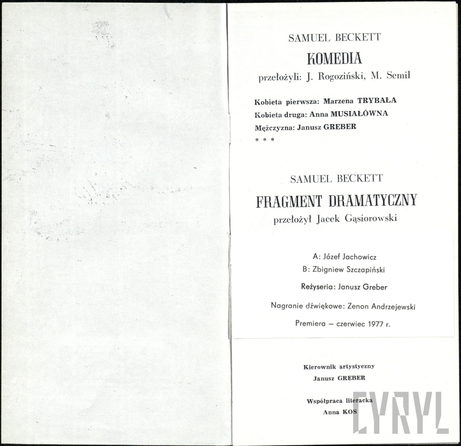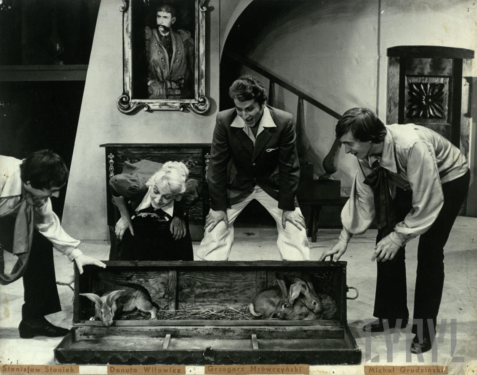 10.07.1969Włodzimierz Kłopocki (Gnafeus), Halina Przybylska (Matka Kacpra), Barbara Drogorób (Żona Kacpra), Zbigniew Roman (Doktor M.), Marian Pogasz (Joannes) w spektaklu