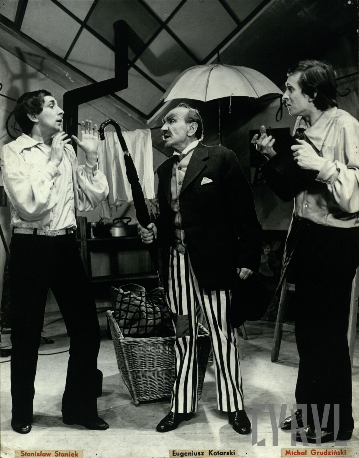 04.07.1971Stanisław Staniek, Eugeniusz Kotarski i Michał Grudziński w spektaklu List z tamtego świata Kornela Makuszyńskiego wystawianego przez zespół Teatru Nowego w Domu Kultury Milicji Obywatelskiej “Olimpia”