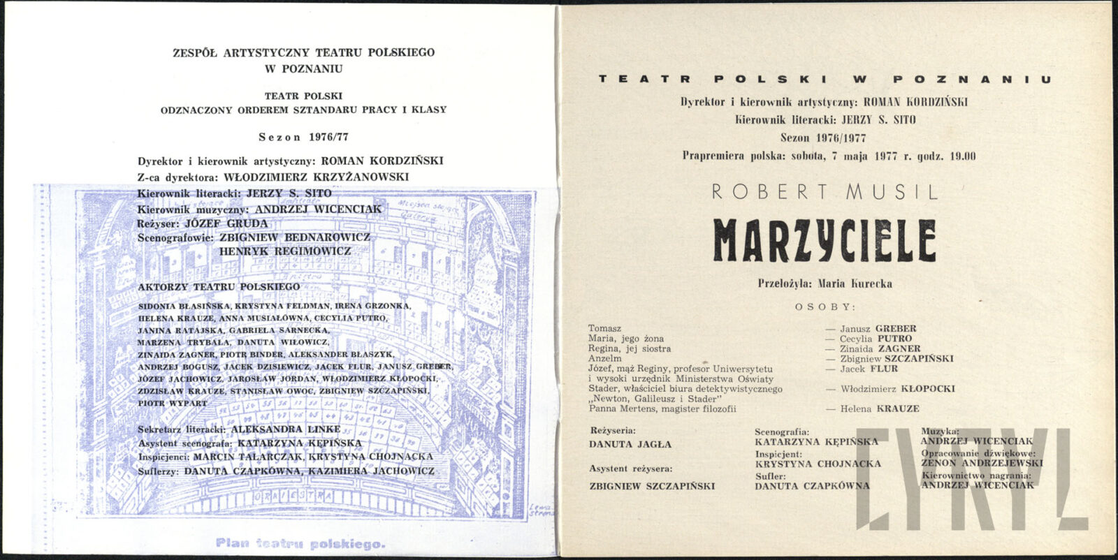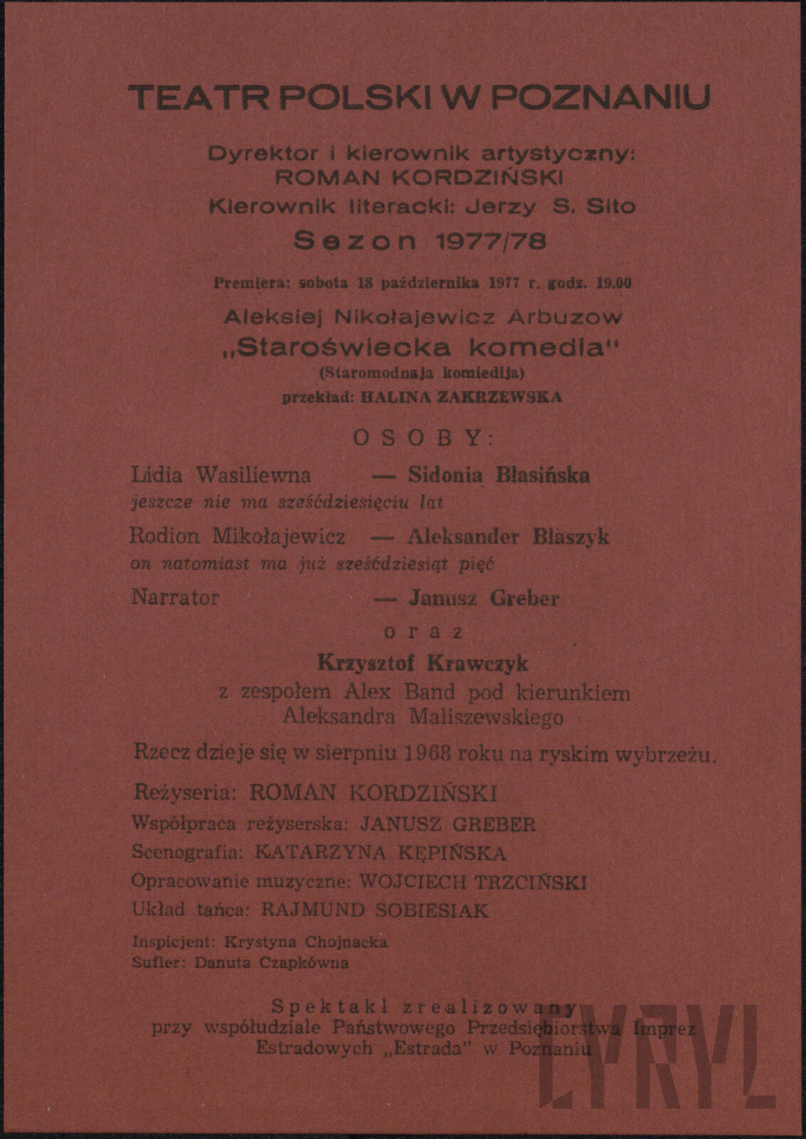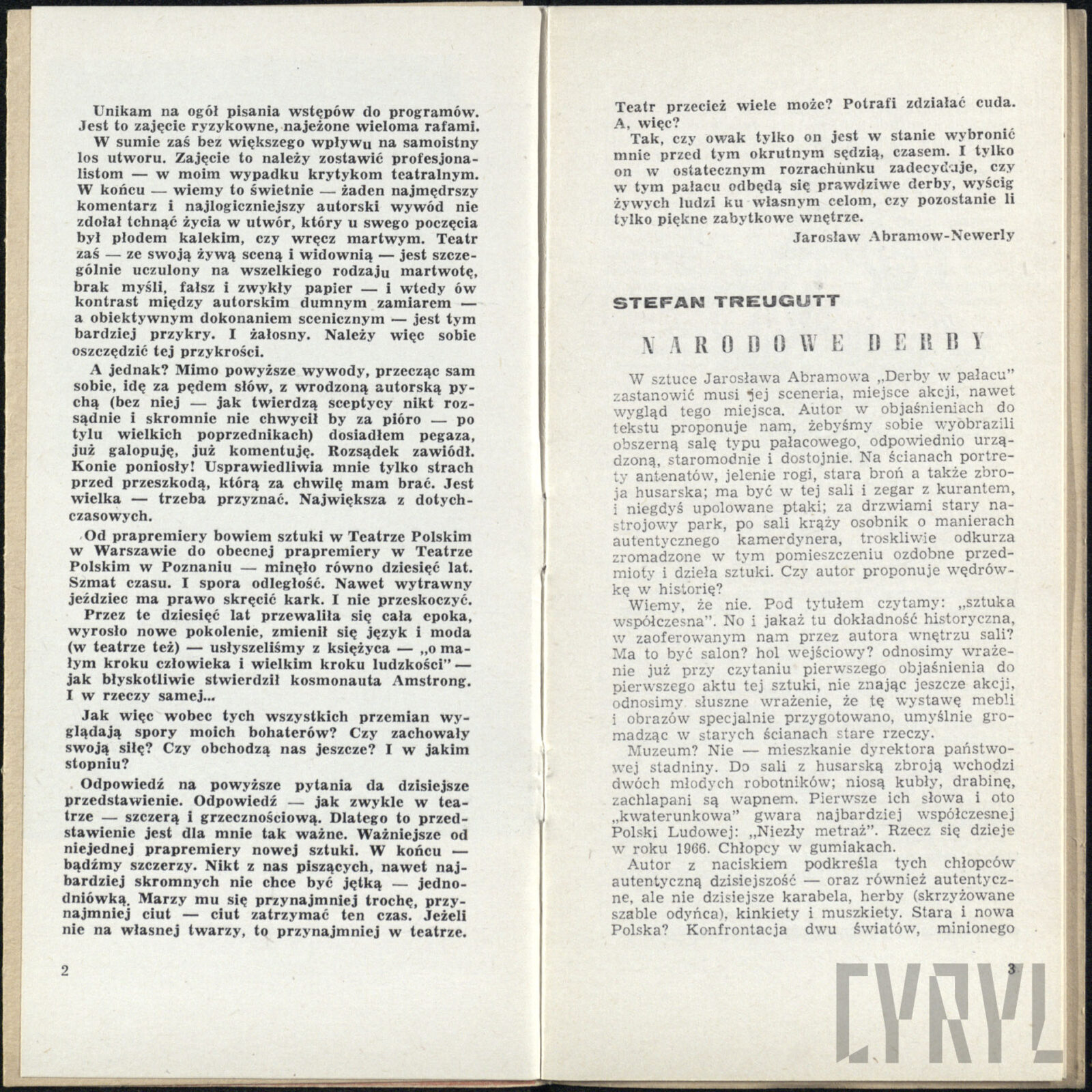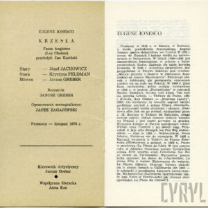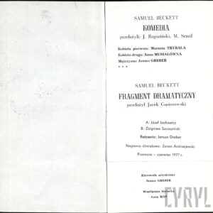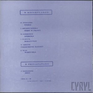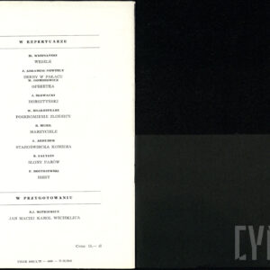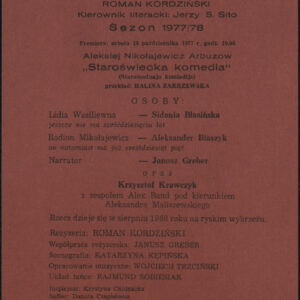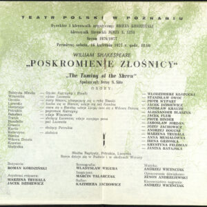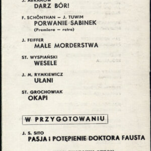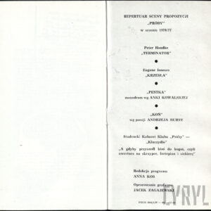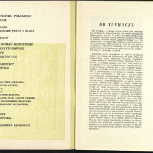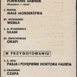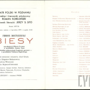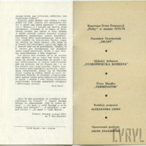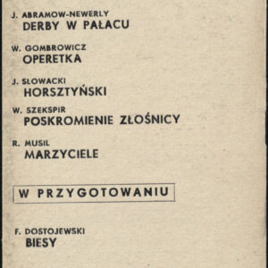 20.02.1972Program spektaklu Derby w pałacu Jarosława Abramowa-Newerlego w Teatrze Polskim w Poznaniu