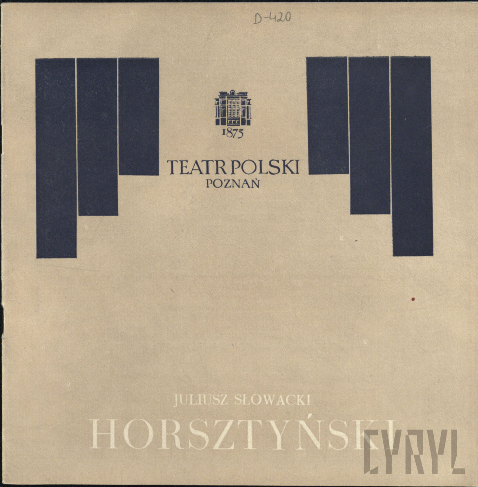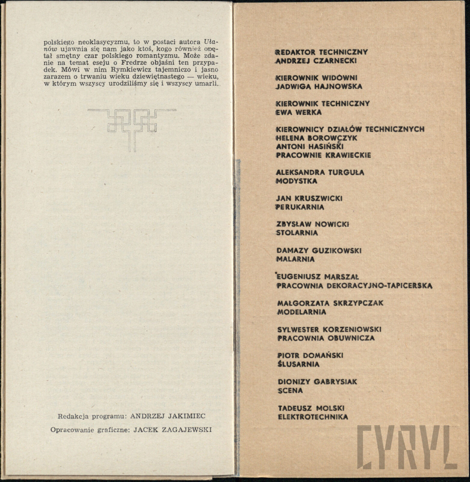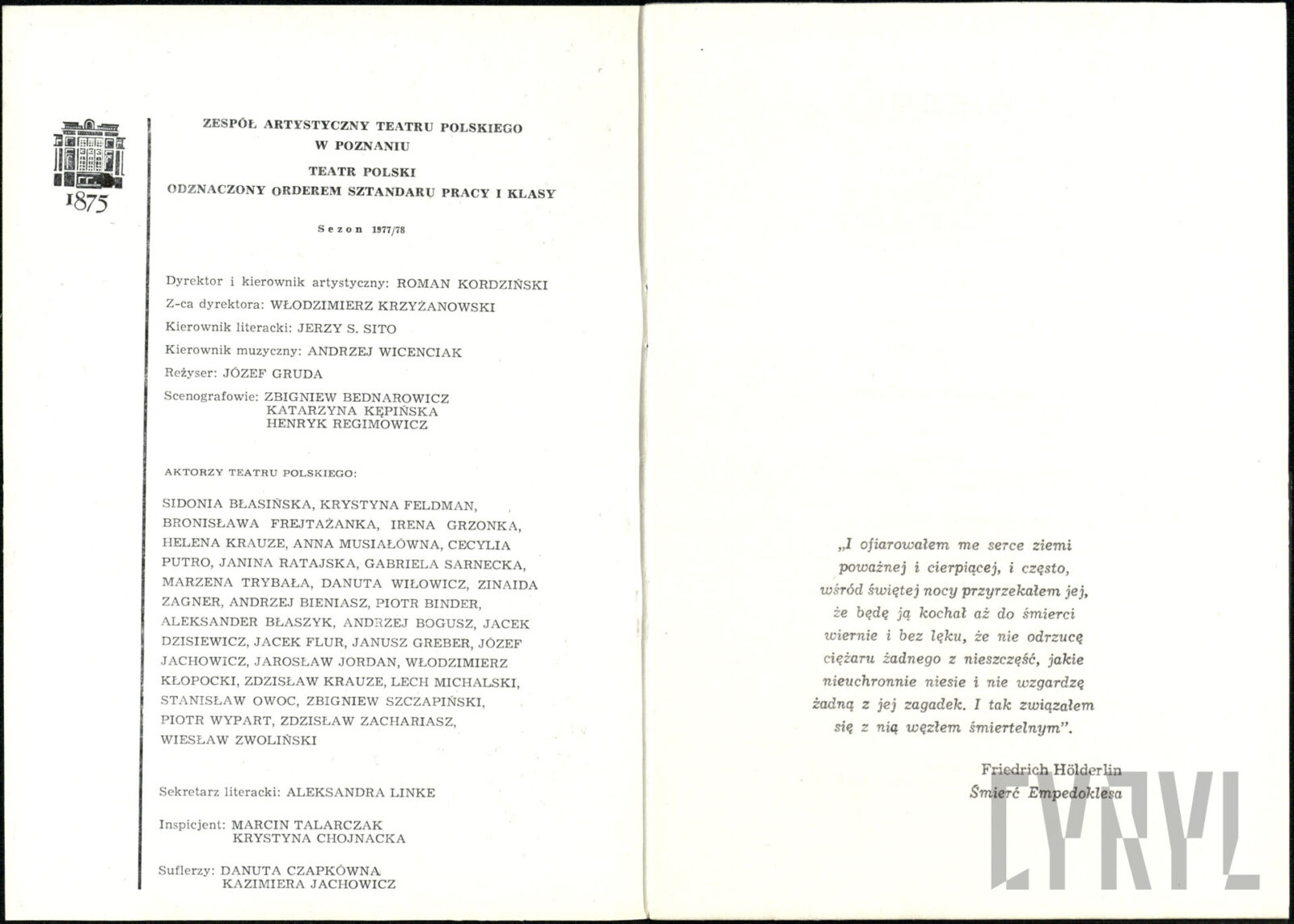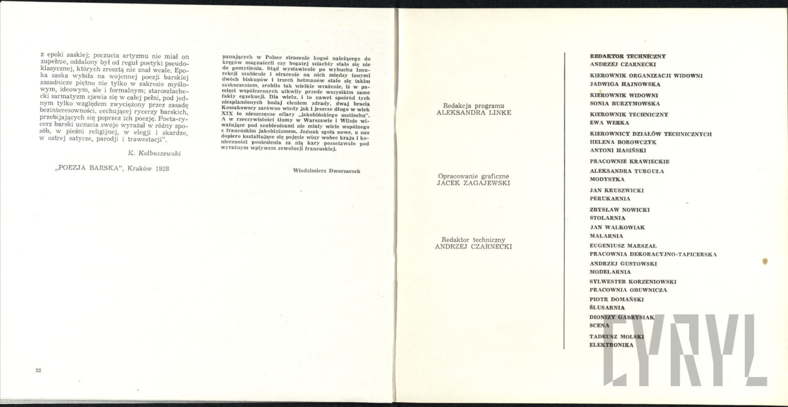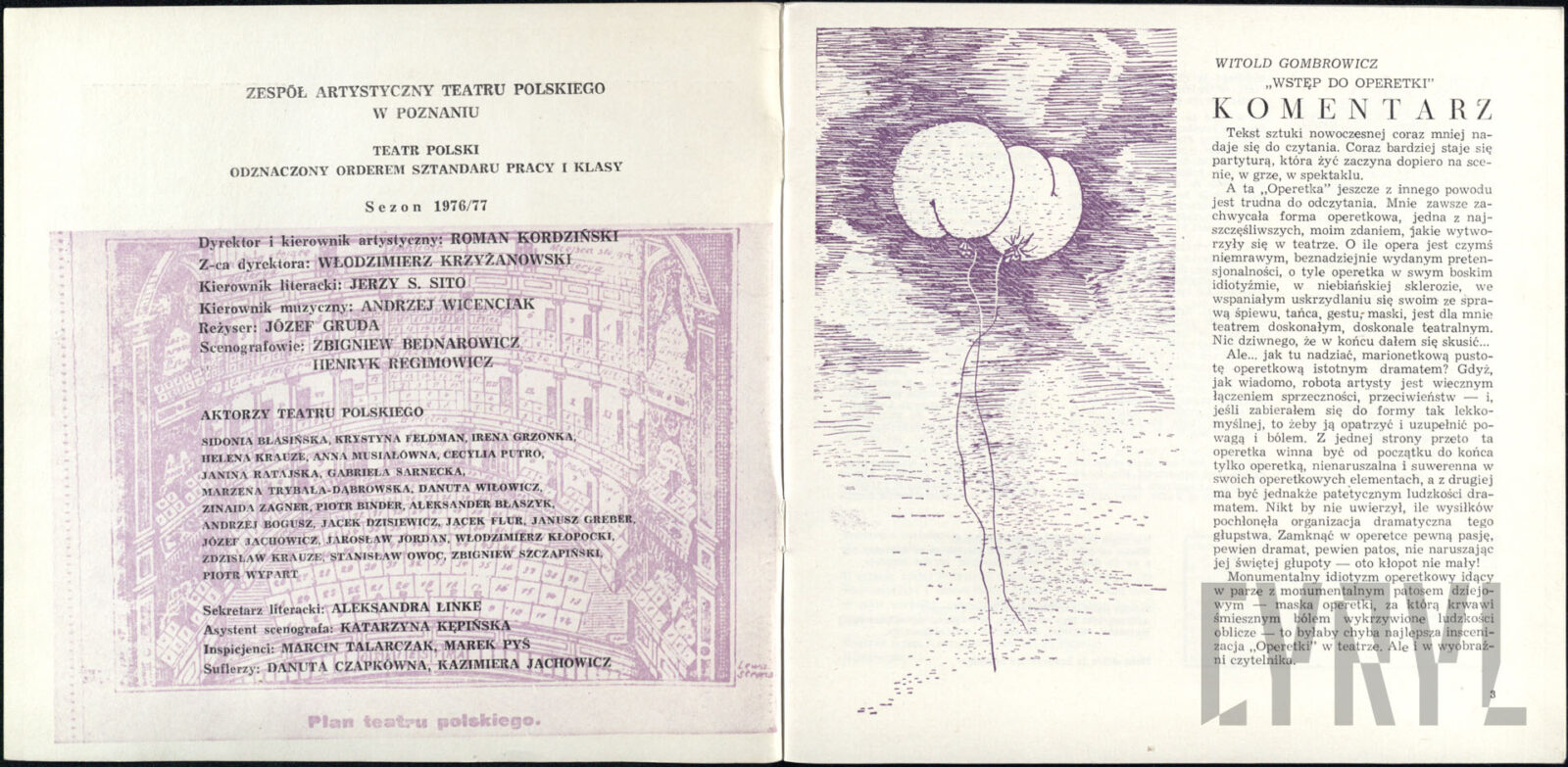 20.02.1972Program spektaklu Derby w pałacu Jarosława Abramowa-Newerlego w Teatrze Polskim w Poznaniu