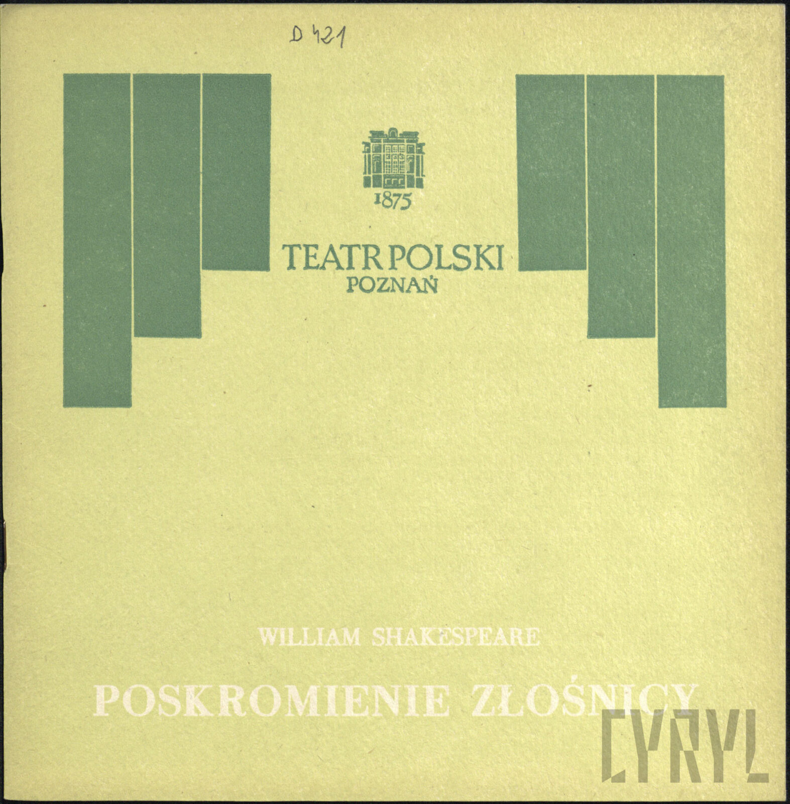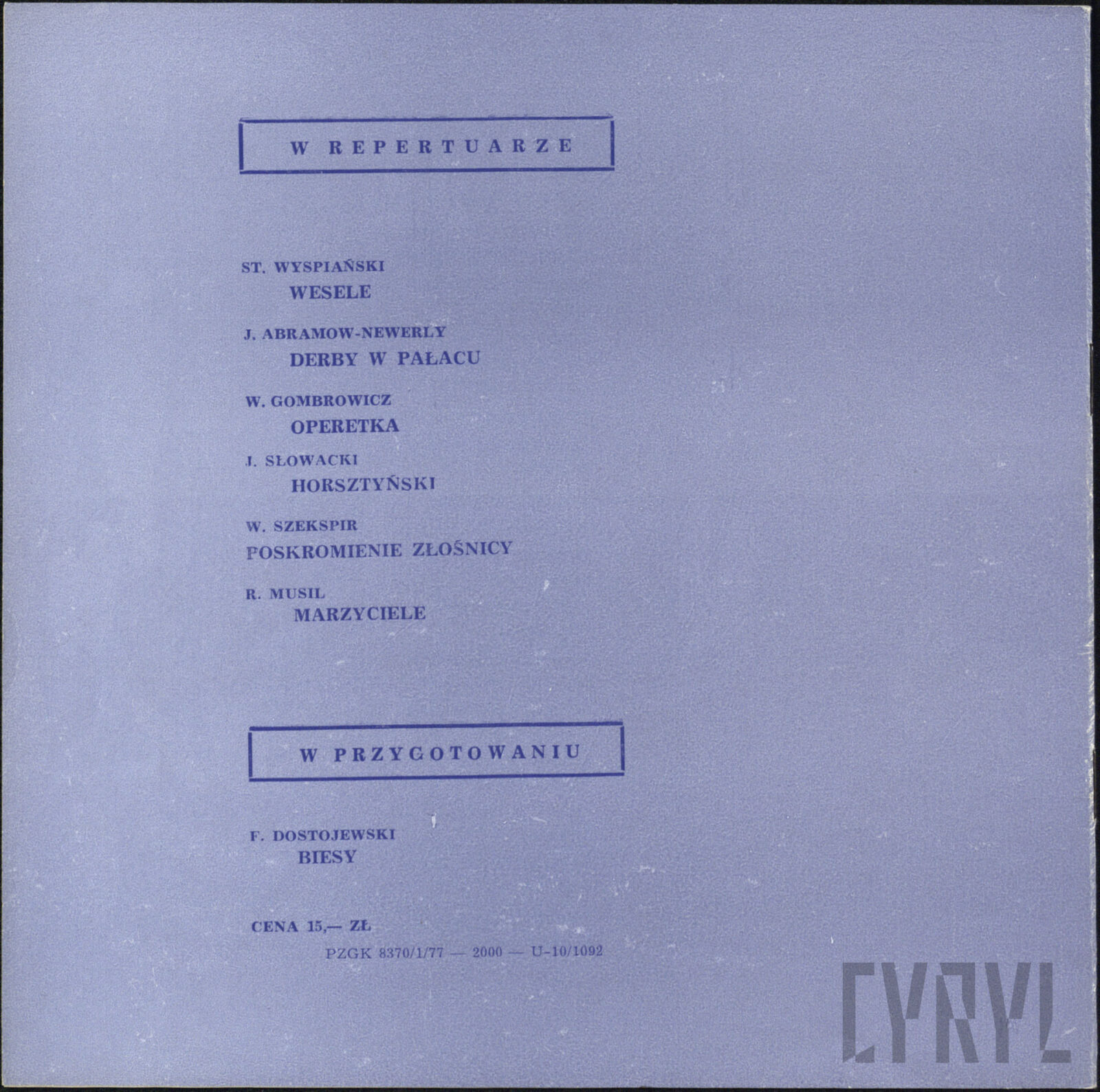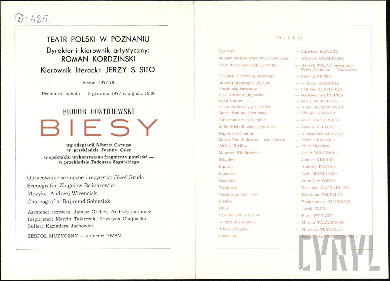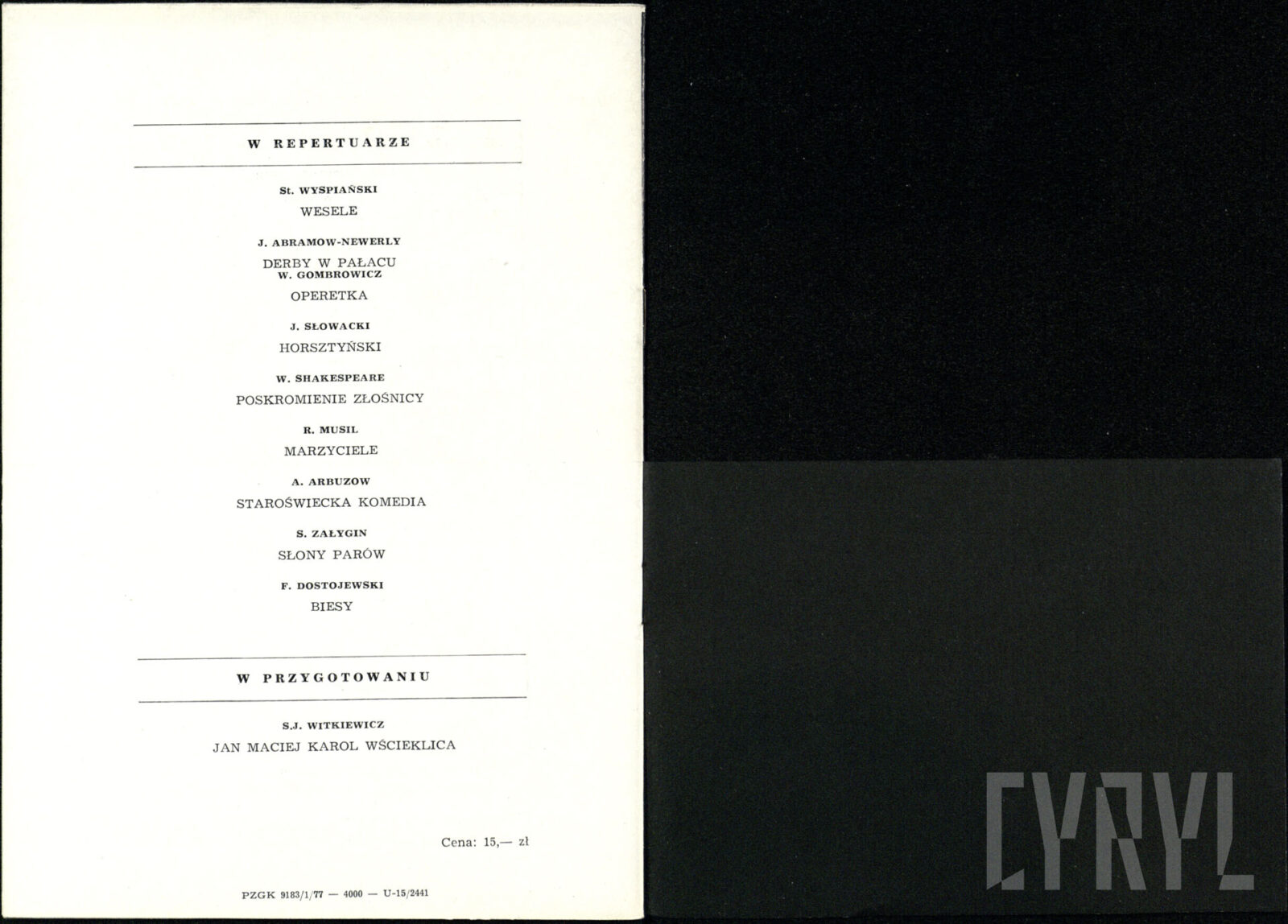 20.02.1972Program spektaklu Derby w pałacu Jarosława Abramowa-Newerlego w Teatrze Polskim w Poznaniu