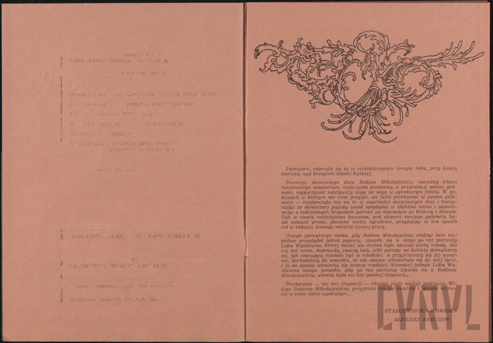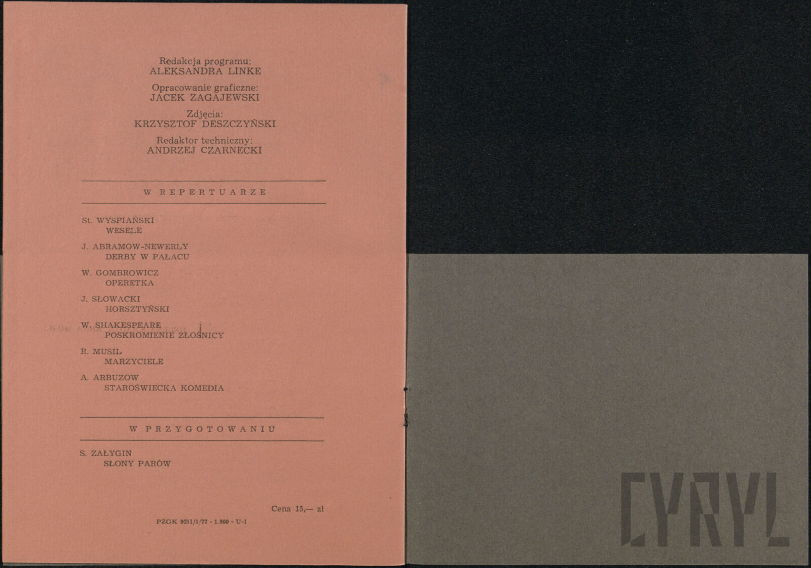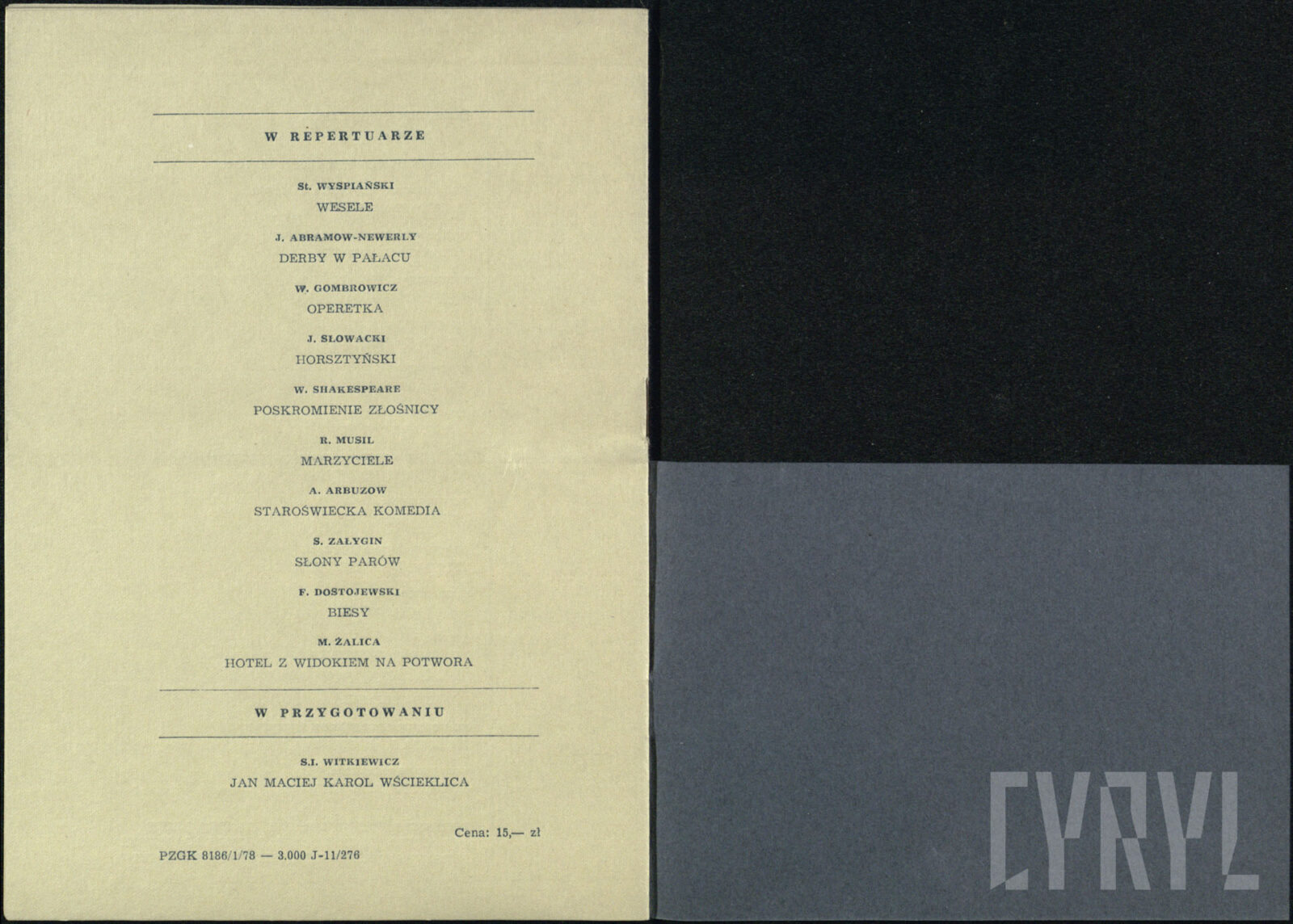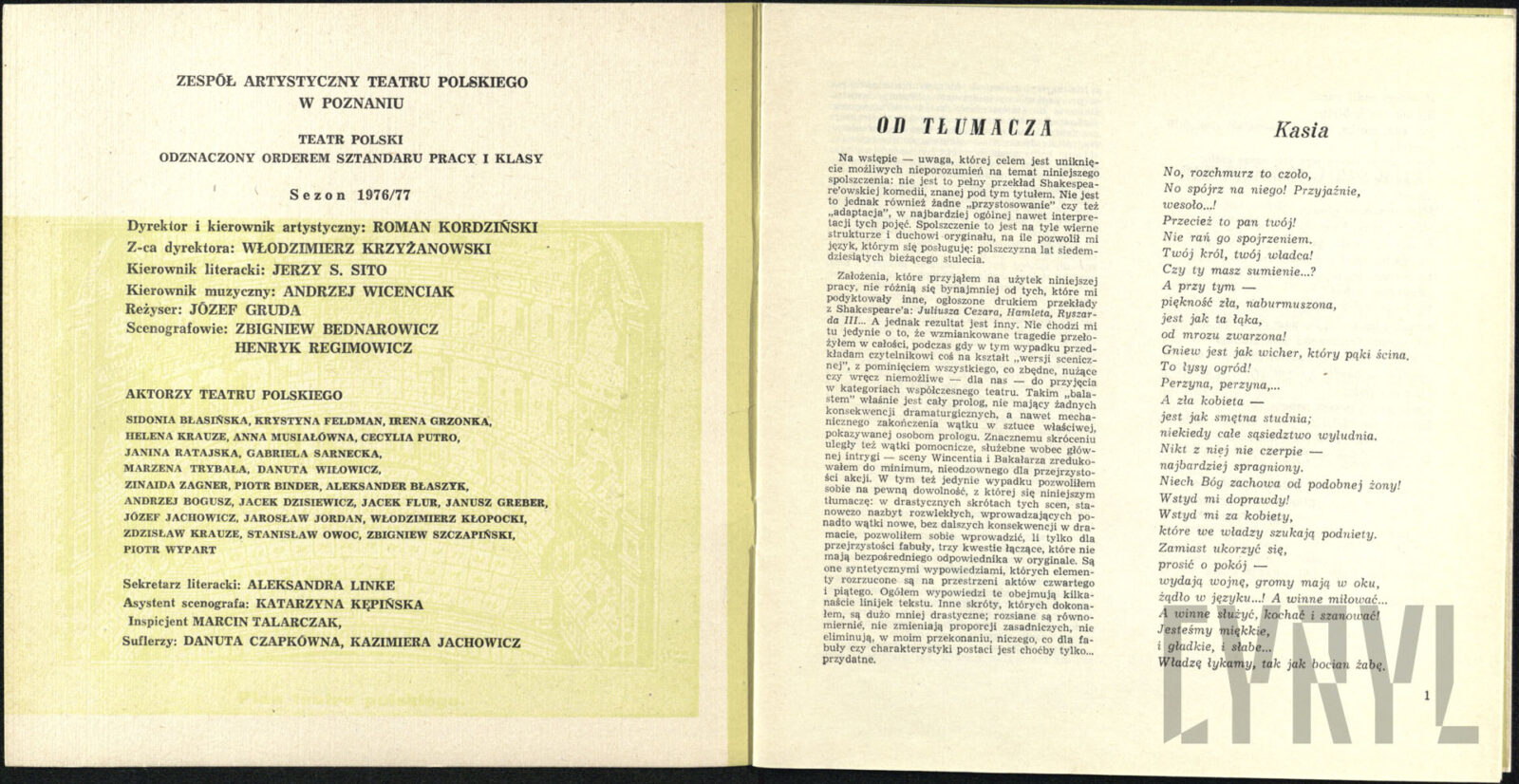 11.06.1976Program spektaklu Derby w pałacu Jarosława Abramowa-Newerlego w Teatrze Polskim w Poznaniu