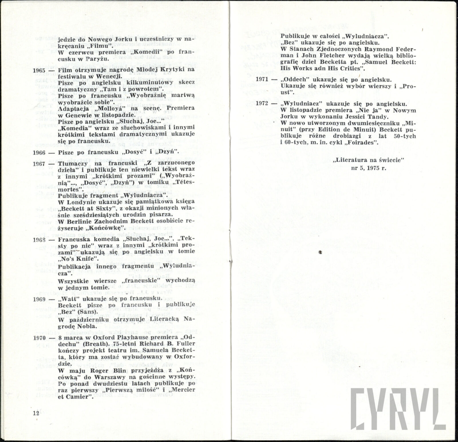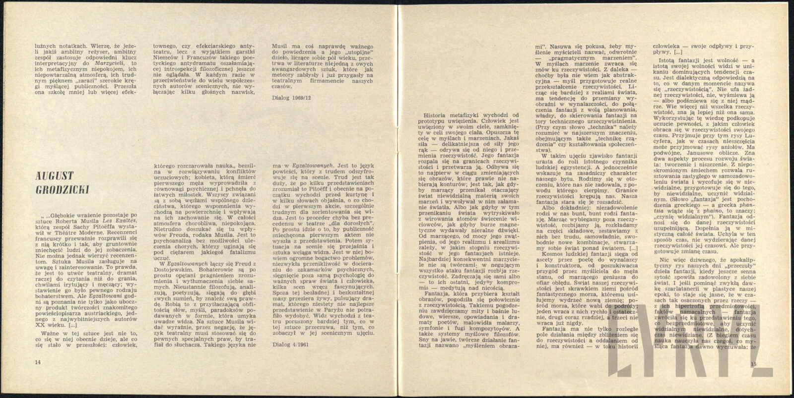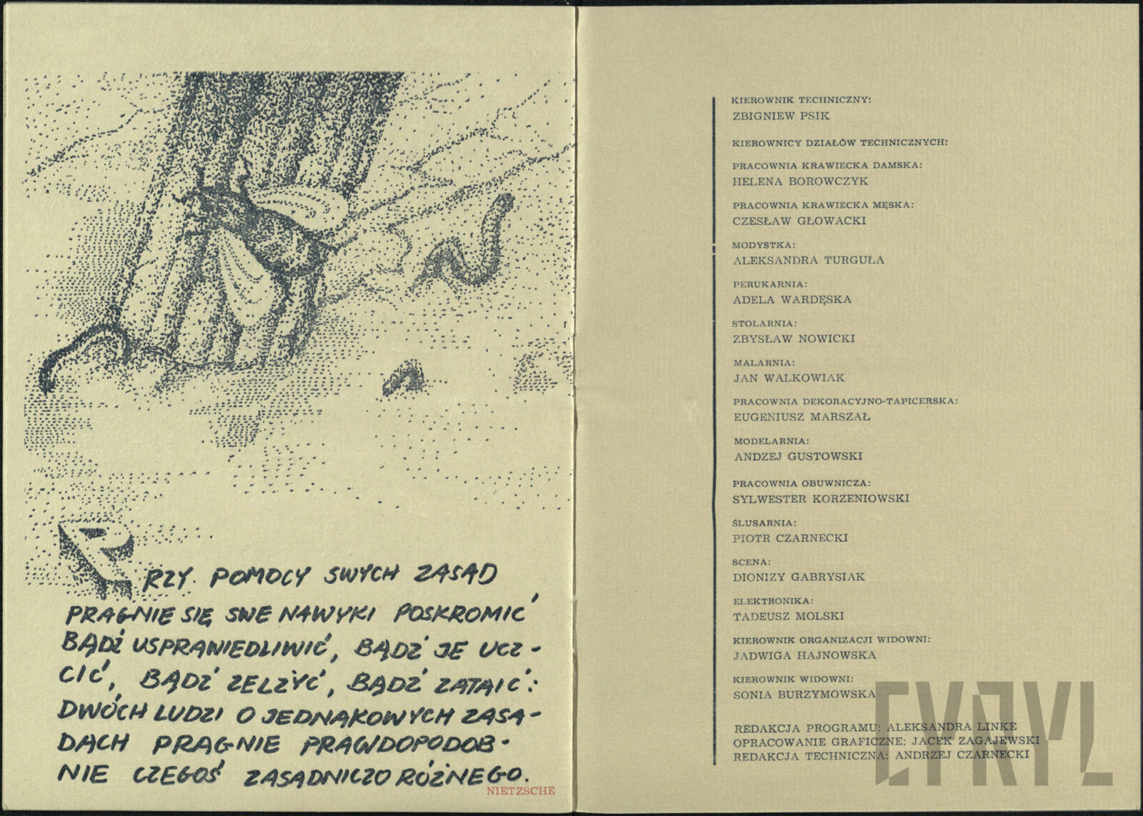 04.07.1971Stanisław Owoc i Zbigniew Roman w spektaklu List z tamtego świata Konrela Makuszyńskiego w reżyserii Antoniego Baniukiewicza, wystawianego przez zespół Teatru Nowego w Domu Kultury Milicji Obywatelskiej “Olimpia”