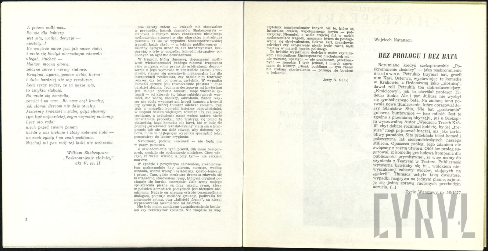 Koniec księgi VI Jerzego Broszkiewicza wystawionym na deskach Teatru Polskiego
