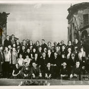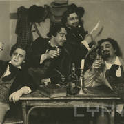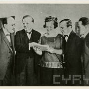 Pietro Mascagni (drugi z lewej), kompozytor "Rycerskości wieśniaczej", Piotr Stermicz-Valcrociata (dyrektor Teatru Wielkiego), Nika Jakubowska (odtwórczyni roli Santuzzy), Radzisław Peter (Turiddu) i Stefan Romanowski (Alfio)1925