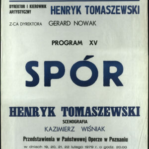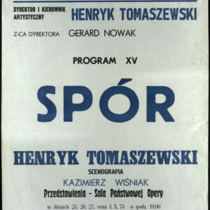 09.02.1977–11.02.1977Afisz spektaklu Wrocławskiego Teatru Pantomimy Spór Henryka Tomaszewskiego na deskach Opery poznańskiej