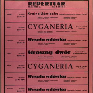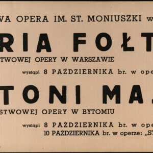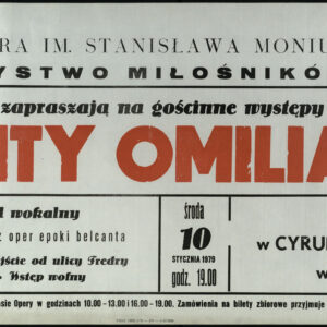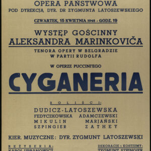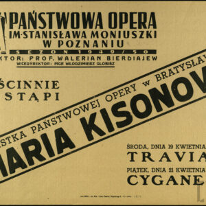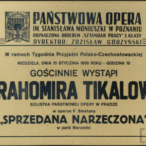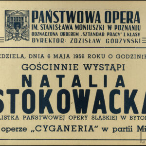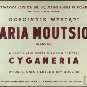 02.03.1967Afisz gościnnego występu greckiej solistki Marii Moutsiou w spektaklu operowym Cyganeria Giacoma Pucciniego