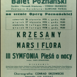 04.01.1978Afisz spektakli baletowych Krzesany, Mars i Flora oraz III symfonia Pieśń o nocy w wykonaniu Polskiego Teatru Tańca Baletu Poznańskiego na deskach Opery