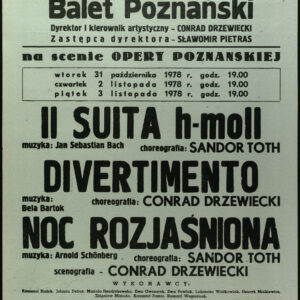 04.06.1978Afisz spektakli baletowych II suita h-moll, Sonata oraz Noc rozjaśniona w wykonaniu Polskiego Teatru Tańca Baletu Poznańskiego na deskach Opery