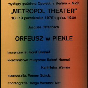 21.10.1978–22.10.1978Afisz gościnnych występów artystów z niemieckiego Teatru Metropol z operetką Orfeusz w piekle Jacques’a Offenbacha