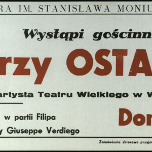 21.09.1978–23.09.1978Afisz gościnnego występu solisty z Teatru Wielkiego w Warszawie Jerzego Ostapiuka w partii Filipa w operze Don Carlos Giuseppe Verdiego na deskach Opery