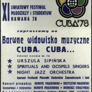 07.06.1978Afisz widowiska muzycznego Cuba, Cuba… zorganizowanego w ramach XI Światowego Festiwalu Młodzieży i Studentów Hawana 78 w Operze poznańskiej