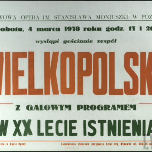 19.03.1978–21.03.1978Afisz gościnnego występu zespołu Wielkopolska na deskach Opery z galowym programem z okazji XX-lecia istnienia