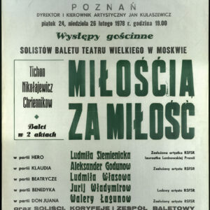 04.03.1978Afisz występów gościnnych solistów baletowych Teatru Wielkiego w Moskwie w spektaklu Miłością za miłość Tichona Nikołajeiwcza Chriennikowa