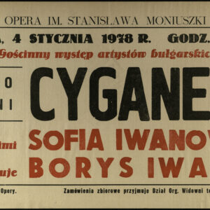 24.02.1978–26.02.1978Afisz gościnnego występu bułgarskiej solistki Sofii Iwanowej w partii Mimi w operze Cyganeria Giacoma Pucciniego oraz dyrygenta Borysa Iwanowa