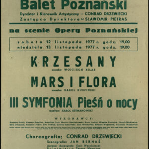 12.11.1978–19.11.1978Afisz spektakli baletowych Krzesany, Mars i Flora oraz III symfonia Pieśń o nocy
