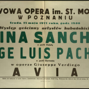 07.06.1977Afisz gościnnych występów kubańskich artystów Aliny Sanchez w partii Violetty oraz Jorge Luisa Pacheco w operze Traviata Giuseppe Verdiego