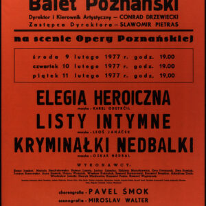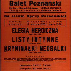 19.03.1977Afisz spektakli baletowych Elegia heroiczna, Listy intymne oraz Kryminałki nedbalki